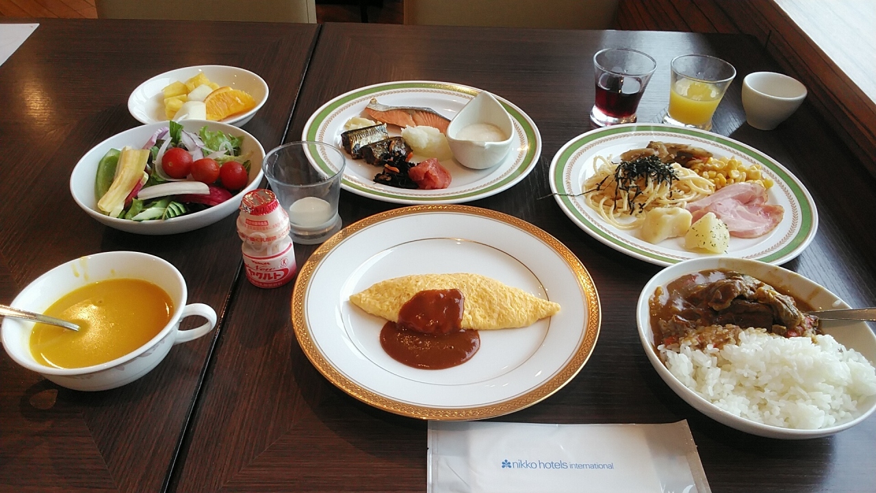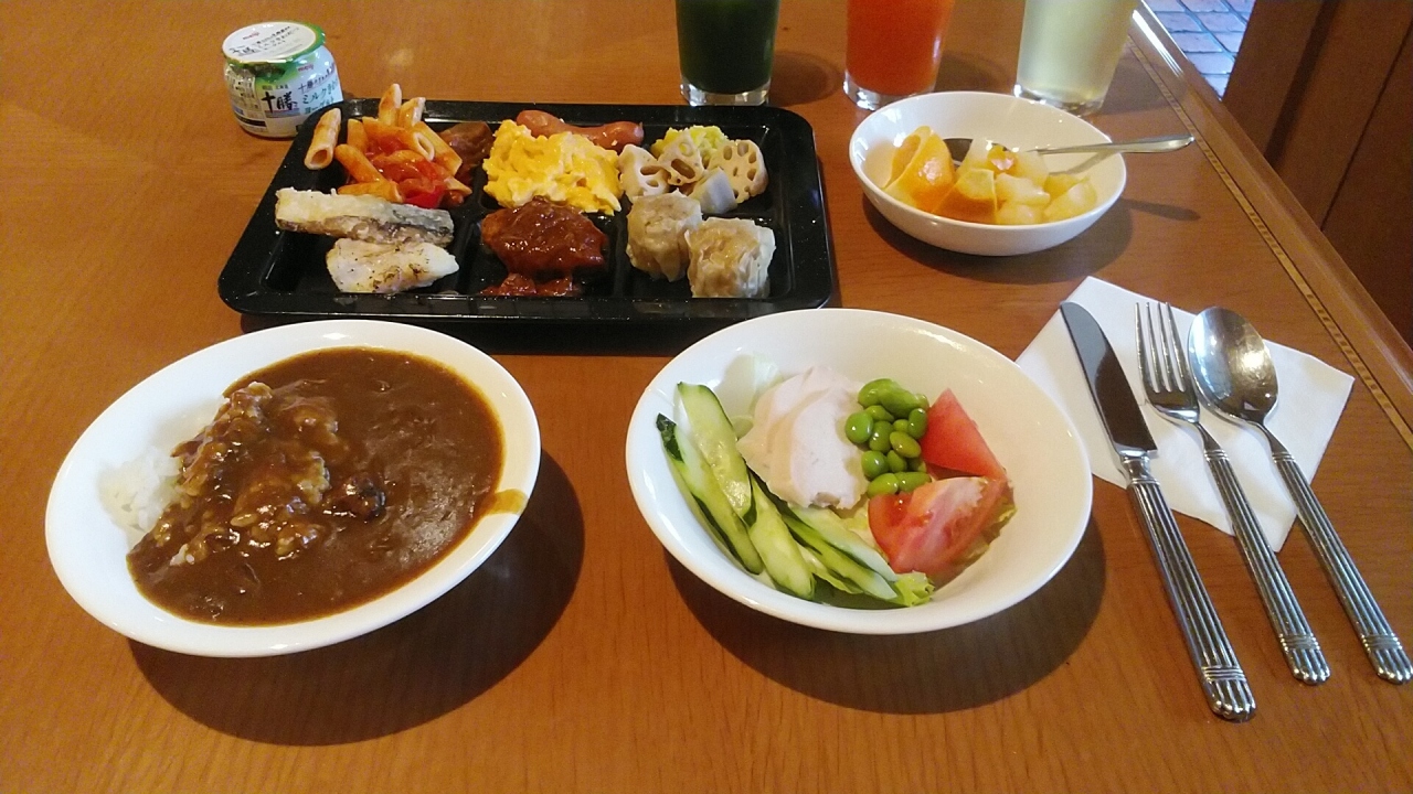 朝食は流石のパレスホテルで派手さは無いですが、館内の和食と中華のレストランから提供されているのか?鯖の竜田揚げや焼売も美味しく、カレーも美味しく満足でした。青汁も健康的で飲みましたw