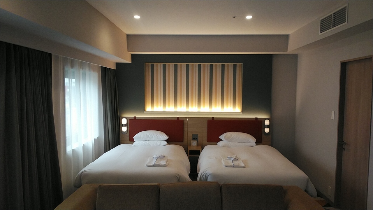 今回はデラックスツインに2泊しました。前回は羽田空港帰りにシーサイドスーペリアダブルに宿泊して眺望は東京の湾岸の景色に朝日を楽しんだので、シーサイド側の逆の眺望はどんな感じか楽しみで宿泊しました。デラックスツイン禁煙は19階から22階のコーナーに位置していて2方向の眺望が楽しめ、デラックスツイン禁煙に関しては近隣のビルより高いので眺望も邪魔されること無く良かったですね!