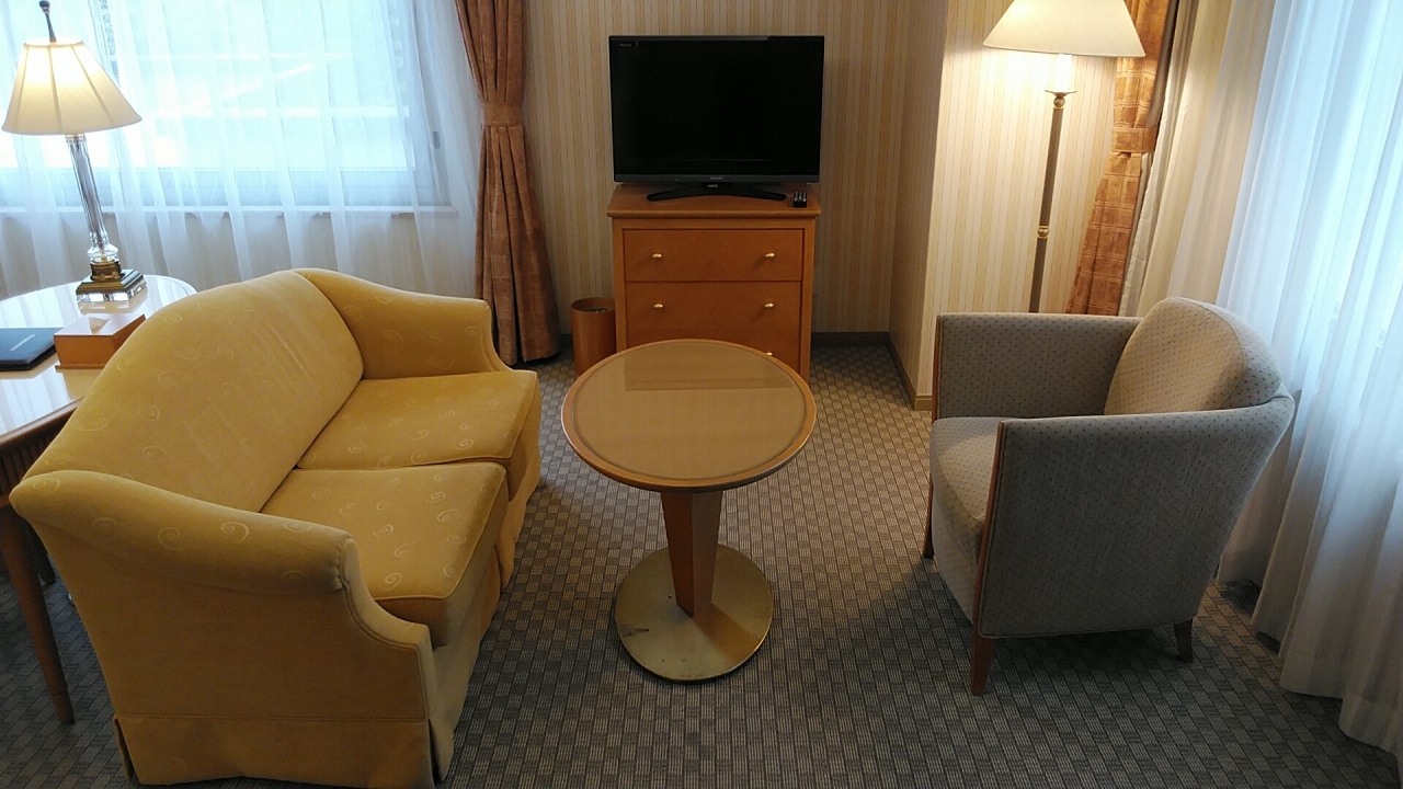 部屋は45㎡あるのでゆとりがありツインのデュベスタイルのベッドメイキングに、テーブルにソファー、ビューバスでゆっくりできます。レストラン、ラウンジ、ケーキのテイクアウト等も再開されているので館内で楽しめます。朝食はビュッフェで美味しく、オムレツはオーダーで提供され、デザートの苺のソフトクリームがソルベ風で美味しかったですね!館内レストランはテイクアウトもあって以前と比べ選択肢も増えてました。駐車場は無料で、スタッフも親切で心地よい滞在でした。- 旅行時期