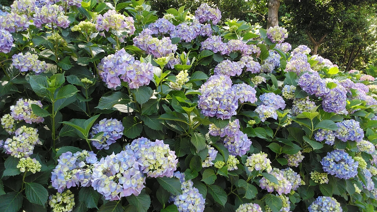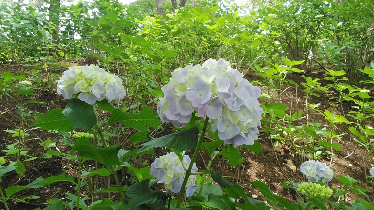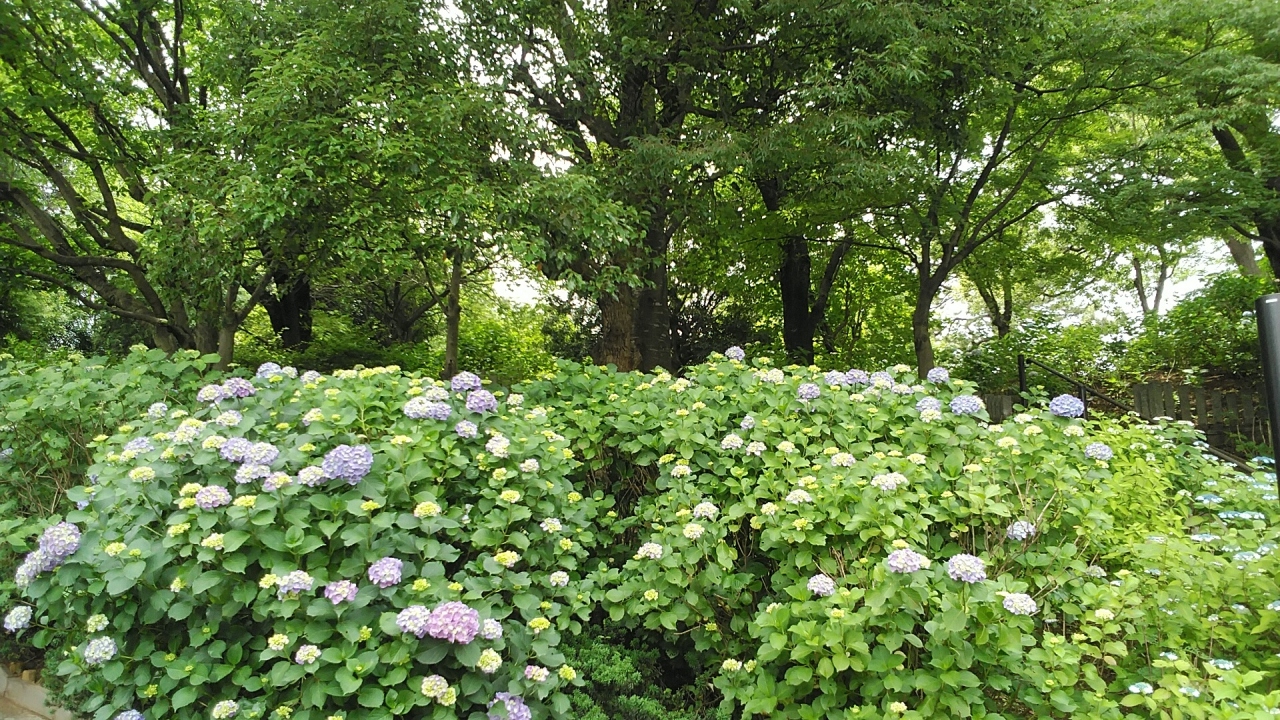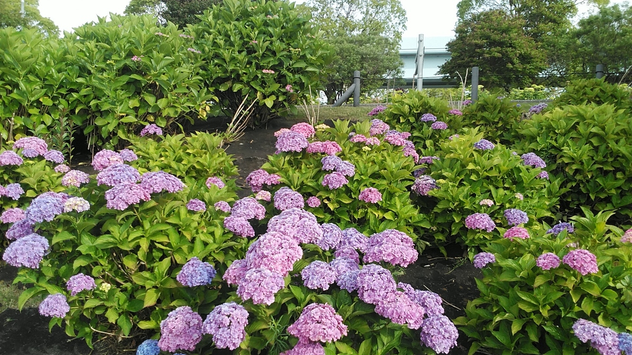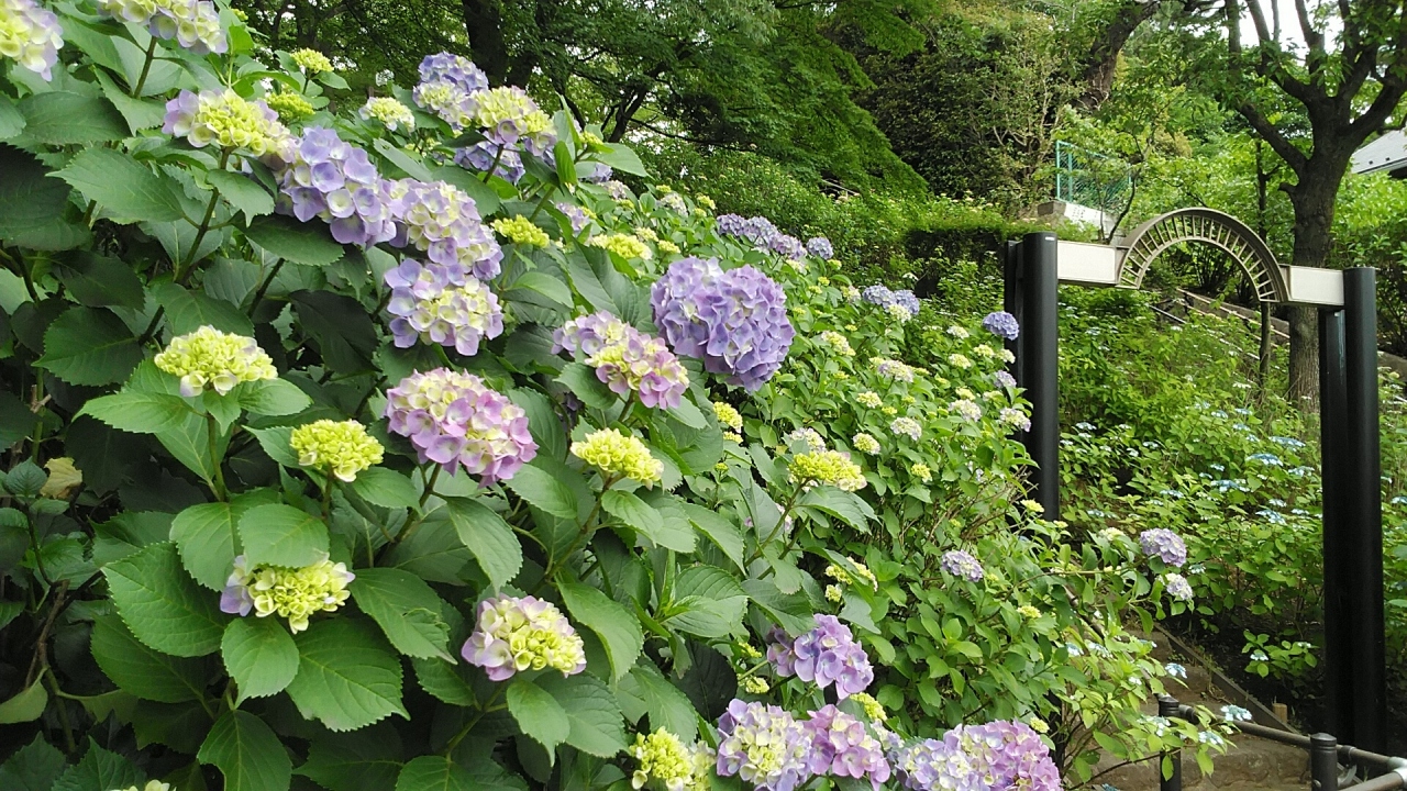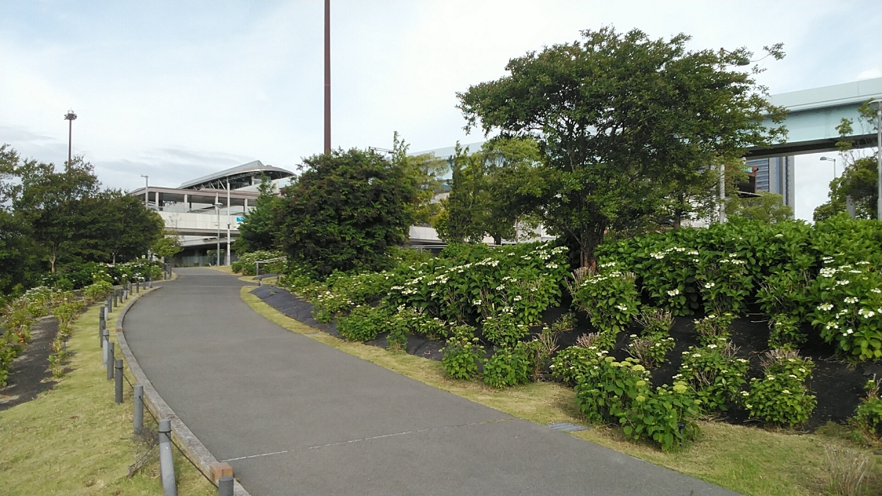 もう1カ所はゆりかもめ青海駅階段を下りた水の広場公園の紫陽花です。シンボルプロムナード公園からも歩いて5分程度です。- 旅行時期
