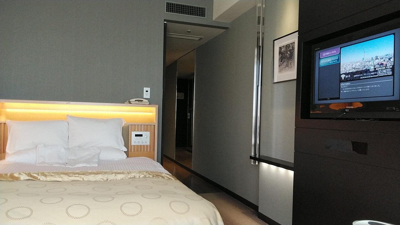 フレキシブルにチェックイン可能24時間ステイプランで宿泊しました。通常のチェックイン15時で13時にチェックインしたのですぐにチェックインできて混雑がさけられ良かったですね!部屋は19階にアサインされ浅草寺、スカイツリーの眺望が昼、ライトアップ、日ノ出と楽しめました。個人的に宿泊の条件はデュベスタイルのベッドメイキングなので宿泊前に電話で確認してから予約したのでデュベスタイルでしたw他の部屋はまだまだ旧式のベッドメイキングなので変更になれば検討したいですね!部屋の備品として加湿空気清浄機あがってよかったですが、残念なのが飲み物が粉の緑茶、ほうじ茶のみなのと、ベッド回りにコンセントも無いのは早急に改善して欲しいですね!不思議なのは1人なのにミネラルウォーターは3本でしたw1階のショップの穂乃華は早めの時間にホテルメイドの惣菜を買って、後で温めてくれるので夜景を楽し見ながら部屋吞みできました。