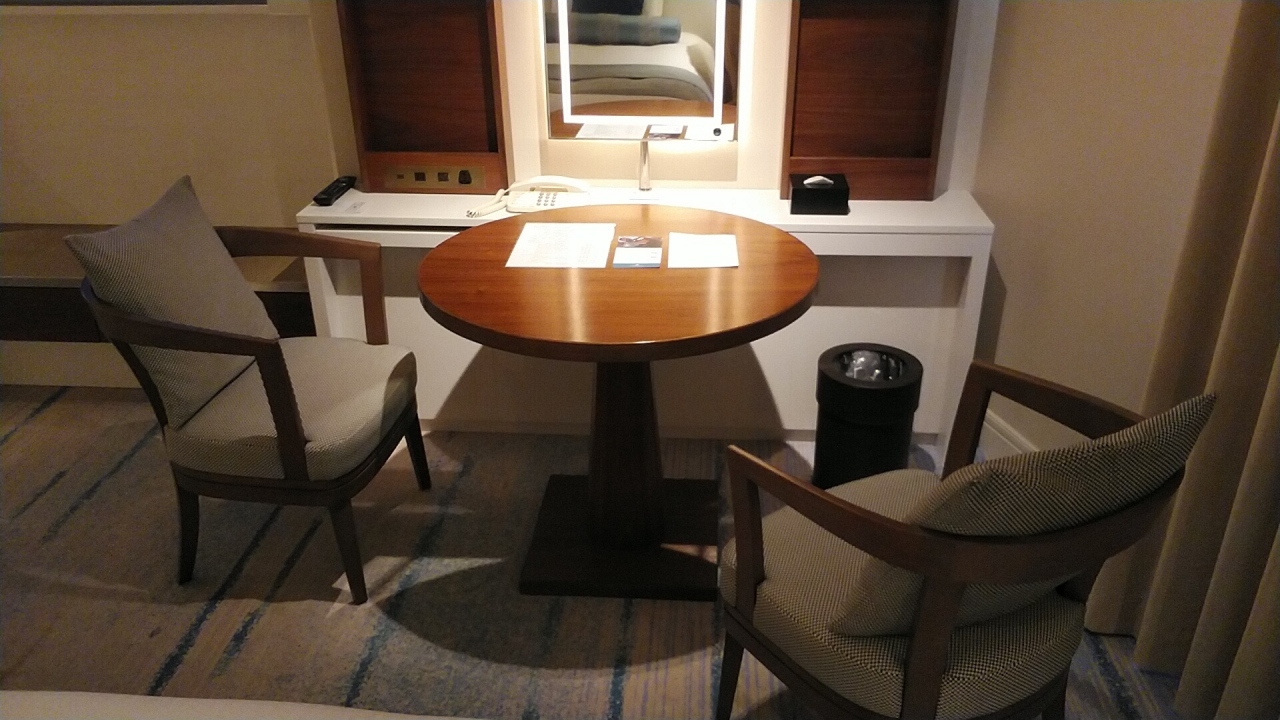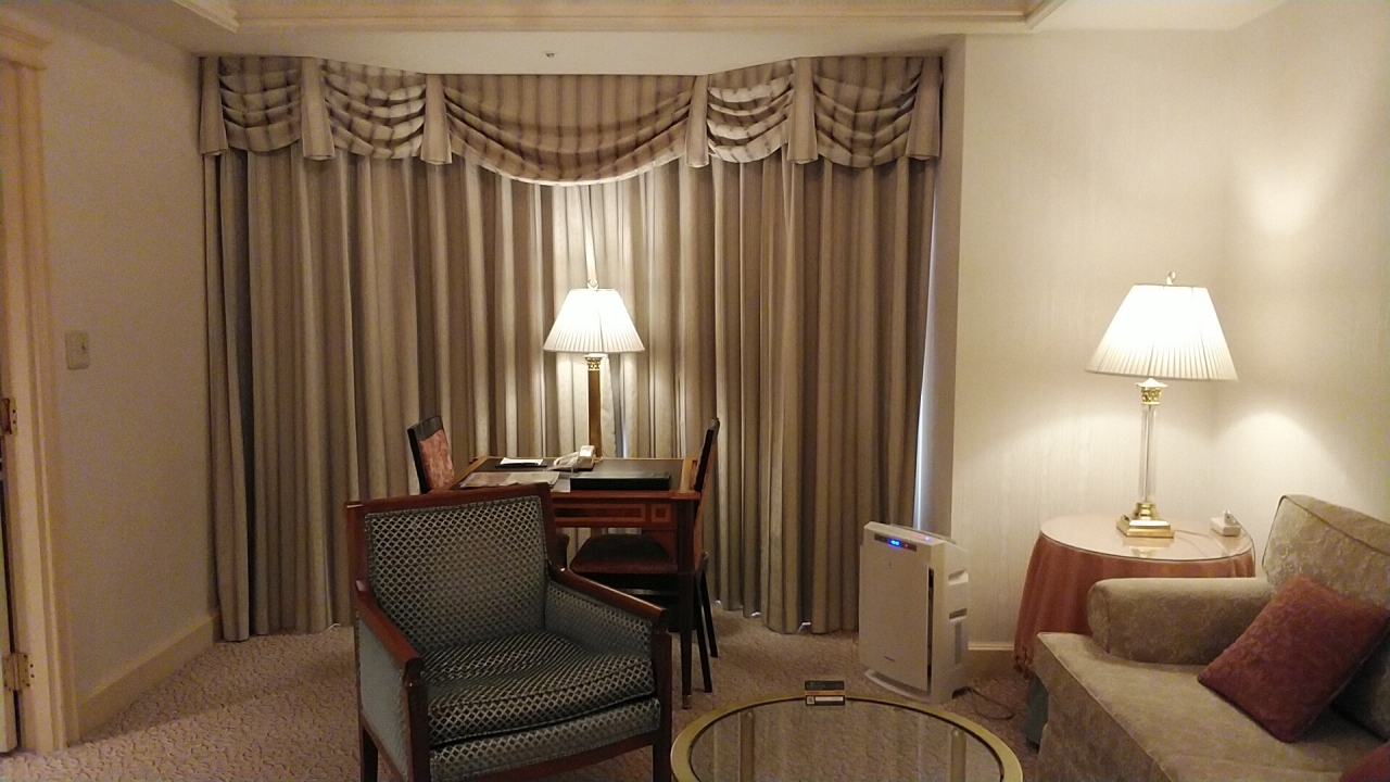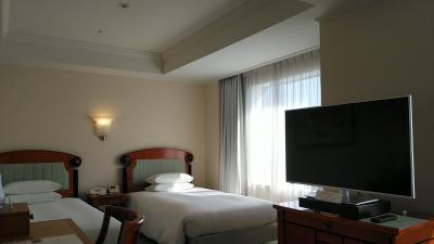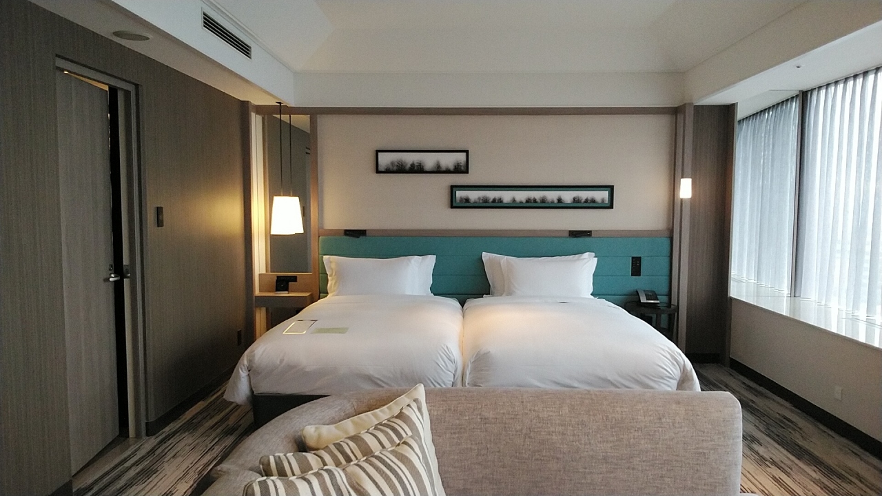 改装デラックスツイン26階を選びました。部屋の大きさは前回と同じ35㎡で部屋のレイアウトが良く広く感じますね!部屋はデュベスタイルのベッドに加湿空気清浄機、好きなL'OCCITANEのアメニティにバスローブ、入浴剤、コーヒー、紅茶、緑茶、ほうじ茶、ミネラルウォーターでゆっくりできます。今回2食付きで予約で夜は中華の南園で水の音が心地よいオブジェの前の席でスタッフの気の利いたサービスに食事も美味しく良かったです。朝食はまだアメリカンブレックファーストか和食の選択ですが前回もおいしかった和食を選択しました。眺望は東向きの客室で朝日が綺麗でした。- 旅行時期