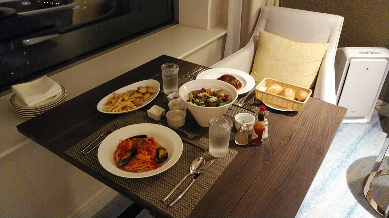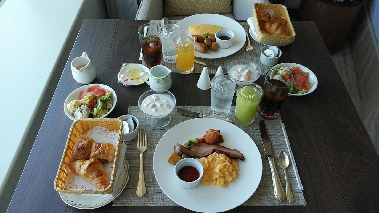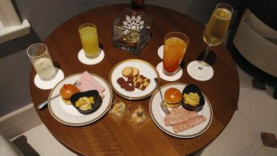 眺望指定なしのプランですが品川方向をリクエストしてました。部屋は26階の品川方向でレインボーブリッジに東京タワーも少し見えてお勧めです。今回も天気が良く夕陽に富士山も見えて良かったですね!エグゼクティブフロア宿泊でティータイムにカクテルタイムタイムで利用しましたが、冷製オードブル等のフードとスパークリングワイン・ビールサーバーもありお勧めです。前回10月との違いはオードブルはカウンターでシェフがとりわけてくれて、おかわりも可能でした!その後インルームダイニングでアラカルトと部屋の冷蔵庫内のサービスの赤白ワインにビールでゆっくりしました。朝食はエグゼクティブフロアはインルームダイニングも可能なのでお勧めです。部屋の内装も綺麗で色々なプランがあって良いですね!