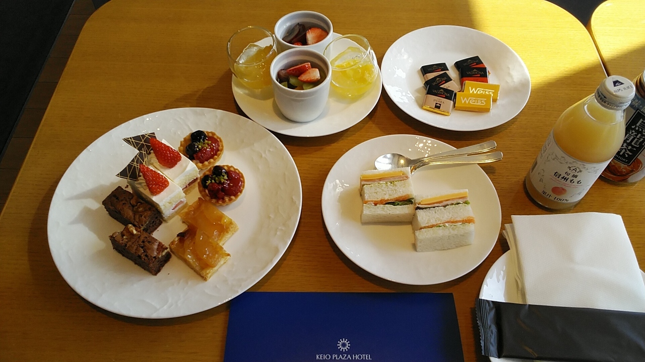 京王プラザホテルは築年数がたっていますが、綺麗にリニューアルされている客室も多いいのでリニューアルされている客室はお勧めですね!今回はクラブフロアの利用ができる客室プレミアグラン41階のプレミアグランキング都庁側にアサインされました。部屋もラウンジもゆとりがあり、人もまだ多くなく快適に過ごせました。チェックイン後ティータイムはケーキのプレートが運ばれて来ますが、プリン、フルーツ、ゼリー等などはビュッフェでとれるので昨年10月より種類も増えてました。バータイムは昨年通りプレートですがお酒の種類も多く夕焼けから夜景が楽しめ良いですね!朝食はチェックイン時に時間と和食洋食を選んで景色の良いラウンジでゆっくり過ごせるのでお勧めですね!朝食は和食を選びましたが、サラダ、ドリンク、ヨーグルト、フルーツにパン等はビュッフェ台からとれるのでお勧めです!部屋は大人の空間に寝やすいベッドにビューバス越しの都庁のライトアップ、L'OCCITANEのアメニティで香りも良くゆっくりできました。
