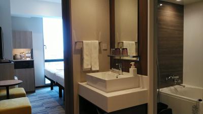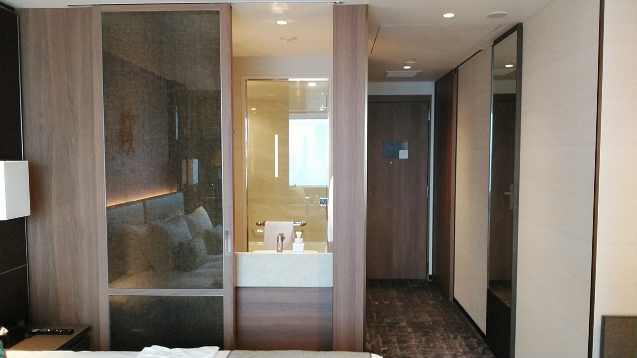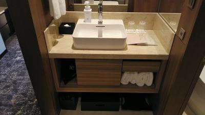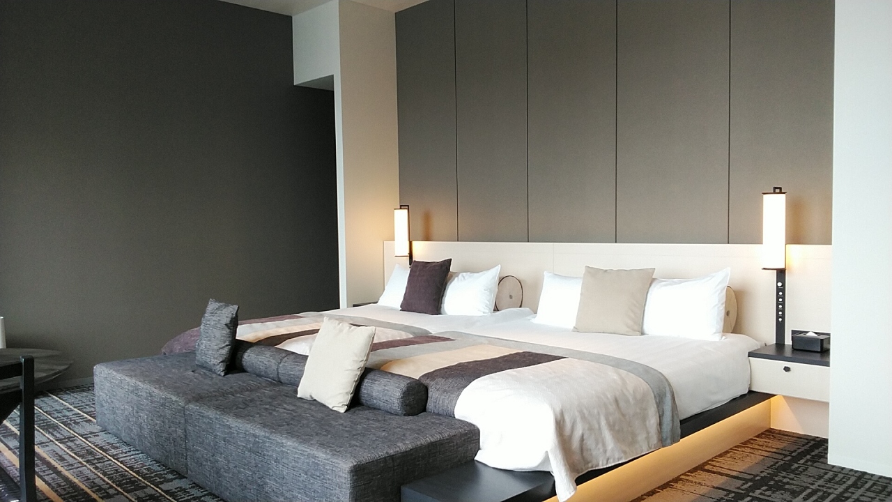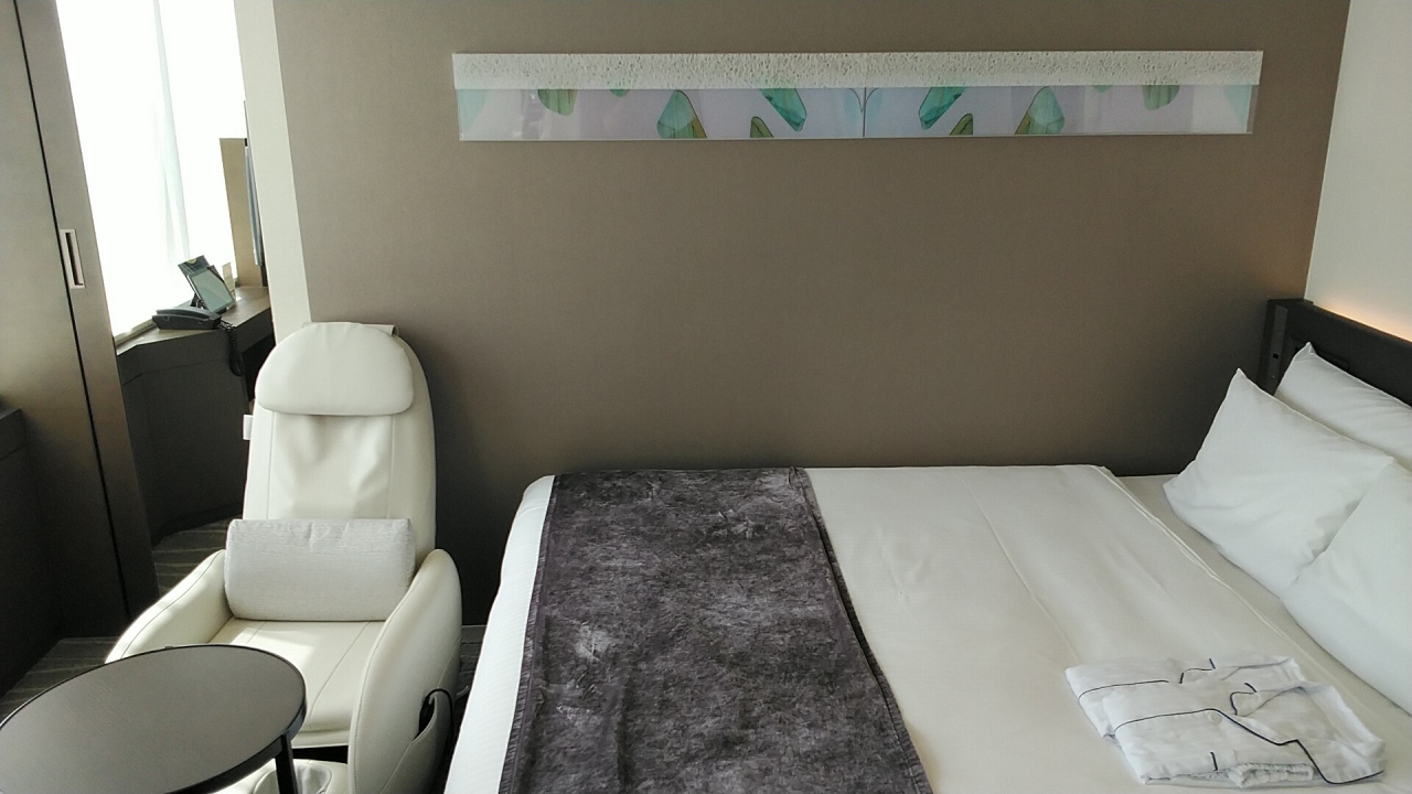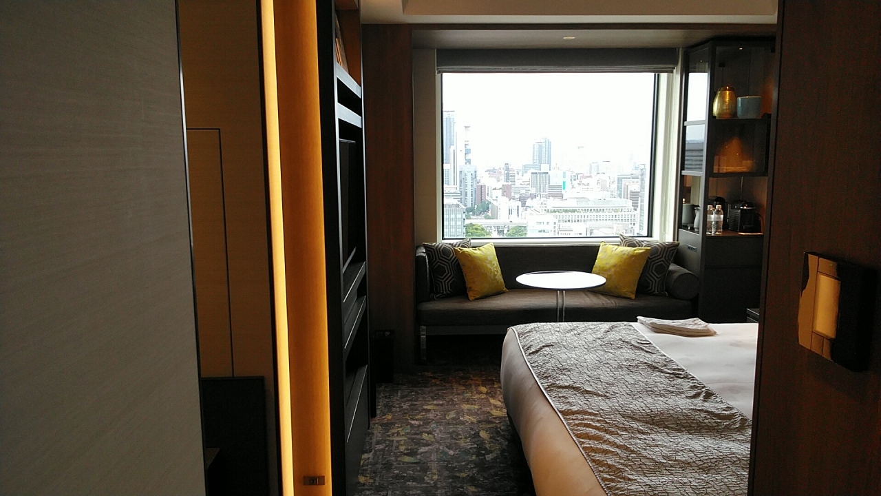 最上階35階のエグゼクティブツイン60㎡に2泊しました。眺望は梅田茶屋町から淀川まで見晴らしが良く地上約120mからの眺望を昼夜楽しめました。ホームページ等にもあまり部屋の詳しい情報が無く60㎡もあって寝室、水回り以外何があるのかなぁと思ってましたが、寝室の裏にウォークスルーのクローゼット兼パティーシンクに電子レンジ、コーヒーメーカー等もあり便利でした。35階ホール裏に製氷機もあります。ベッドも1400幅2台のデュベスタイルのベッドメイキングに加湿空気清浄機も貸し出しあり、部屋も抗ウイルス材の塗布の対策も済んでいて安心の滞在でした。少し不便だったのが洗面台、トイレ、パティーシンクにタオル掛けとタオルがあればよかったですね!また同じビルに飲食店や地下にスーパーもあり館内でゆっくり楽しめました。
