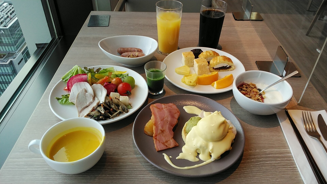 眺望の良い45階のクラブラウンジが利用できるプレミアグランツインに宿泊しました。