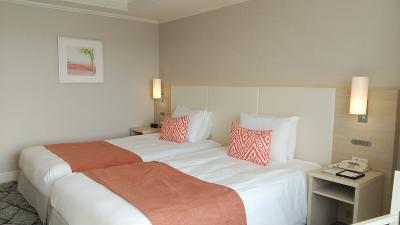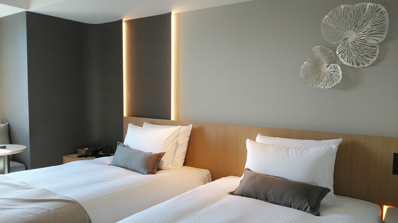 今回3回目の宿泊でした。部屋の内装が優しい色合いで落ち着いていてお気に入りです。部屋は最上階17階のお台場側でレインボーブリッジから東京タワー、海も見えて天気の良い日は眺望もお勧めですね!部屋はデュベスタイルのベッドメイキングに加湿空気清浄機、独立の浴室、コーヒー、ミネラルウォーターもありいいですね!One Harmonyの会員特典で今年度はアップグレードにアーリチェックイン、レイトチェックアウトもあってお勧めですね!食事の場所は少ないですが、市場や散歩で海側を歩いてららぽーともお勧めですね!