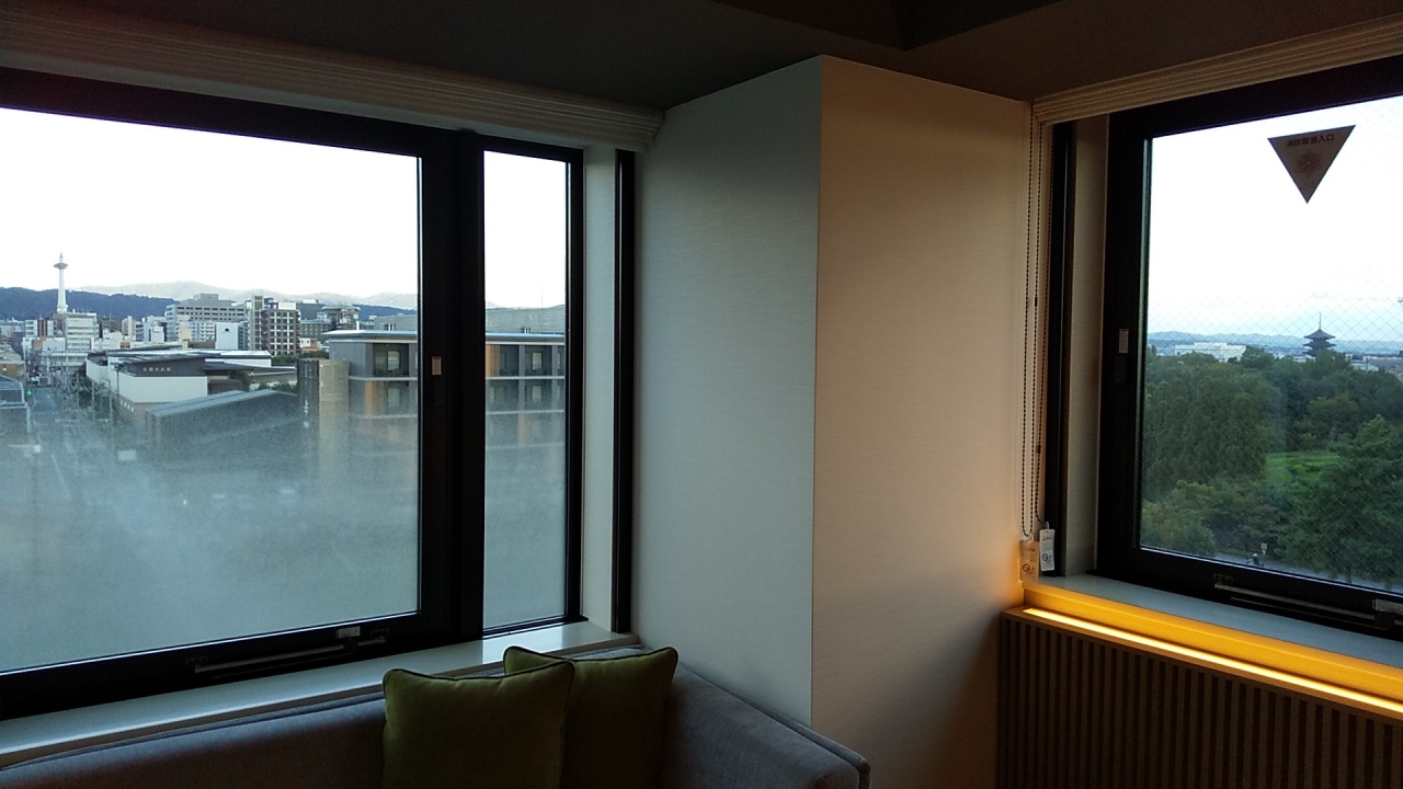 京都のWタワーも見えるコーナーデラックスツインは36㎡あり快適です。