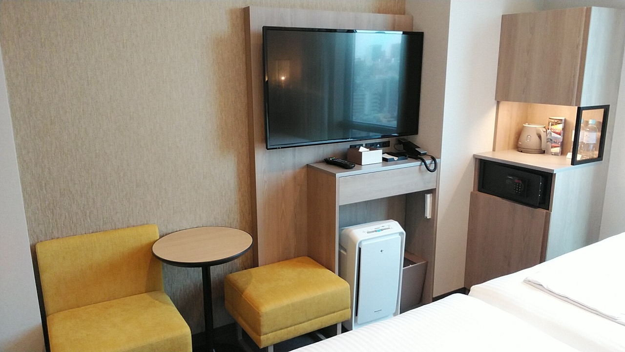 今年オープンの新しいホテルです。立地は池袋駅からも近く、高層階の部屋からは池袋駅側が見えて窓も少しあくので換気がとれてよかったです。予約時に20㎡のツインだったので少し狭いと思いながら予約しましたが、ツインでデスクのイス1客だけでテーブルや荷物の置く台も無く、金庫のある所の扉は全部開かなく、加湿空気清浄機も動かすと通行できなく不便でした。またテレビも最近ではユーチューブやミラーリングできるのが主流だがそのような設備も無く残念でした。レイアウトが悪かったので延長コードを借りようとしましたが貸し出しもなく加湿空気清浄機も利用しにくかったですね!ここ数年でできた新しいダイワロイネットホテルはバストイレ別が増えてきていて快適性がよかったので池袋は残念でした。今後は一人でダブルに宿泊はあるかもしれないが、二人でツインは利用することは無さそうですね!朝食は2階レストランでビュッフェですが内装もよく焼きたてのパンケーキも美味しくよかったです!小さめなのでパンケーキが好きな人は3つくらいが良いですよw