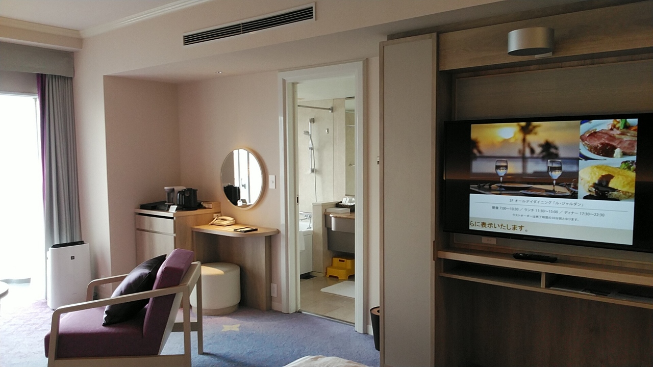 ホテル最上階12階と11階にニッコーフロアが新設されたので宿泊してみました。部屋は40㎡でビューバスにオーシャンビューでバルコニーからスカイツリーから東京ゲートブリッジまで見えました。部屋のベッドは140幅でデュベスタイルのベッドメイキングに肌ざわりの良いパジャマ、バスローブ、コーヒーメーカー、使い切りのアメニティにバスソルト、加湿空気清浄機と快適でした。ニッコーフロア宿泊者はニッコーラウンジが利用できて、ドリンクにスナック類があり景色も楽しめます。舞浜駅からホテル運行の無料バスが30分に1本バスもあるので綺麗になったニッコーフロアはお勧めですね!