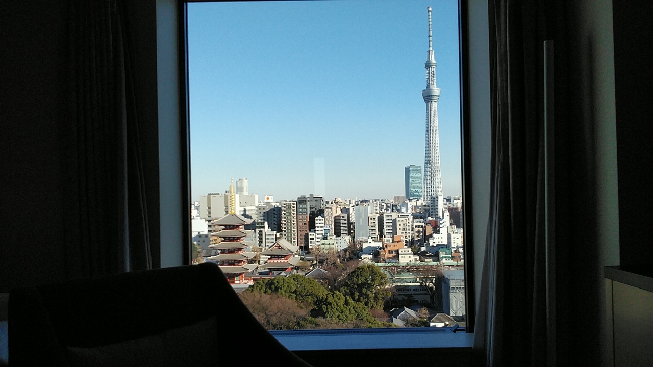 ホテルのランチが1130分からで食事をして12時にチェックインしました。部屋は予約した部屋よりアップグレードしてくれて、プレミアツインでミキモトのシャンプー等のアメニティで40ミリもあり香りもよかったですね!120幅のサータのベッドで寝心地もよく加湿空気清浄機、窓には給気口もありよかったです。掛け布団の仕様が完全なデュベスタイルでないのが少し残念なくらいでした。口コミの眺望の画像はスカイツリー側が多いですが、逆側は佃島から丸の内から池袋、隅田川ビューでエレベーターホールからも見られます。ホテル新築の時はスカイツリーもなかったので広い部屋のスーペリアツインは逆側に多くレイアウトされてるみたいです。個人的には今回の部屋からの都心の眺望も好きですね!ドコモビルとアパホテルが建つ前は最高だったと思いますが!隣接ビルも距離があるので眺望は楽しめますね!久しぶりの両国でしたが江戸東京博物館、北斎美術館、旧安田庭園、隅田川など近所の散策もおすすめですね!大江戸線の両国を使えるとアクセスも便利ですね!