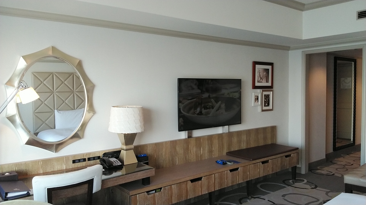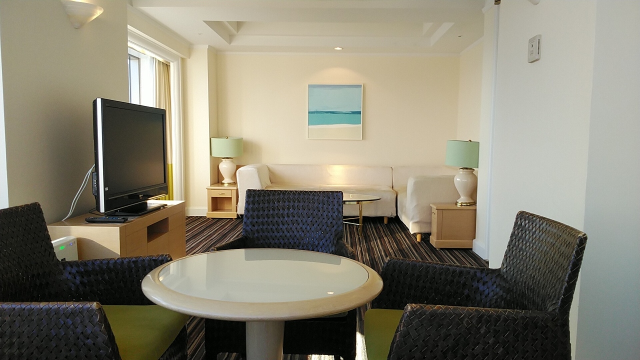 26階エグゼクティブ・スイートの部屋はホームページの画像に近く綺麗な状態でした。ベッドルームとリビングスペースにわかれていて利用しやすいですね。ベッドはデュベスタイルのベッドメイキングで寝やすく、眺望はレインボーブリッジからお台場が一望です。リビングスペースはベッドになるソファに4人掛けのダイニングテーブルがあり眺望はお台場から羽田空港も遠くに見えコーナーに位置するので景色を楽しめました。アメニティに関しては特別感はなく、バスローブくらいですね!今は価格もリーズナブルなので家族でゆっくりするにはお勧めですね!朝食は2200円で追加しましたが洋食で量もちょうど良くよかったです。和食も選択できます。チェックアウト12時でゆっくりできます。