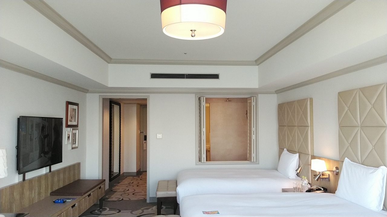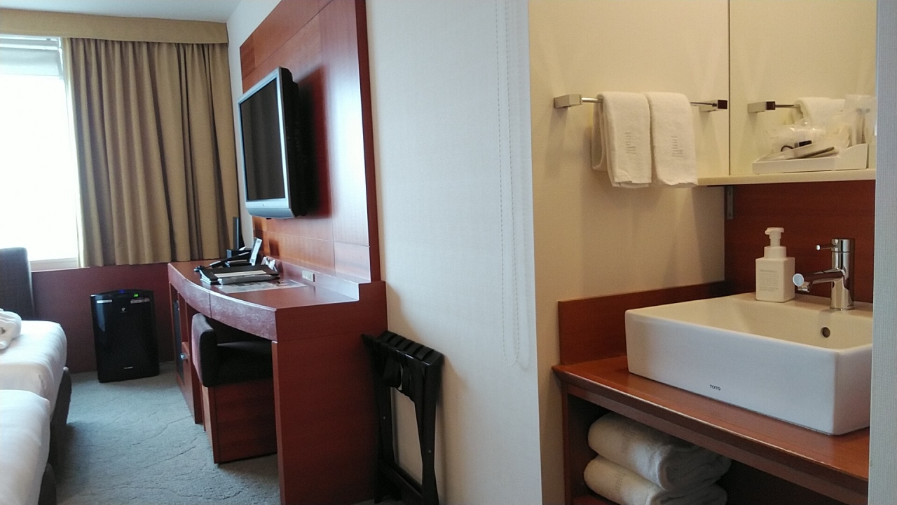 部屋は27㎡でツインはさいたま新都心駅側みたいで眺望も開けていて良いですね!部屋は1200幅のベッド2台に向きの変わるTVがありVODで映画3本をゆっくり楽しみめました。お風呂もシングルダブルより大きい1620サイズなのでゆっくり入浴も楽しめます。朝食は天井の高いレストランでブュッフェで美味しく良いですね!フロント階5階から階段で降りていけるレストランが3,4階に、2階にもコンビニもあり便利ですね。