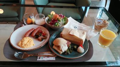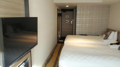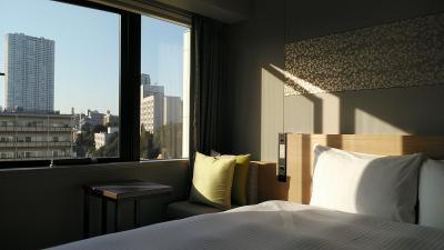 最上階10階にあるグランドフロアにある1番シンプルな18㎡のモデレートキングを予約しました。180cmのベッドが入っているので色々工夫はされているけど2人では狭いですが、1人だったので許容範囲ですね!グランドフロアはアメニティの充実やバスローブ、朝食付でお得感は受けました。部屋はデュベスタイルのベッドメイキングで寝やすく良いベッドでした。眺望は高輪プリンスホテルの紅葉にタワーマンションの夜景で国道の反対なので静かで良いすね。17時から19時まで1階ラウンジで11月中はお酒が無料でビールにワイン、カクテルが無料でよかったです。朝食のパンが美味しくないのと、スープがないのが少し残念ですね。追加だと2000円弱みたいなので次回宿泊するとしたら朝食無しでいいかなと思いました。少しグレードのいいホテルだと思うので朝食はもう少し頑張って欲しいですね!温かい物はもう少し温かく提供もして欲しいですね!