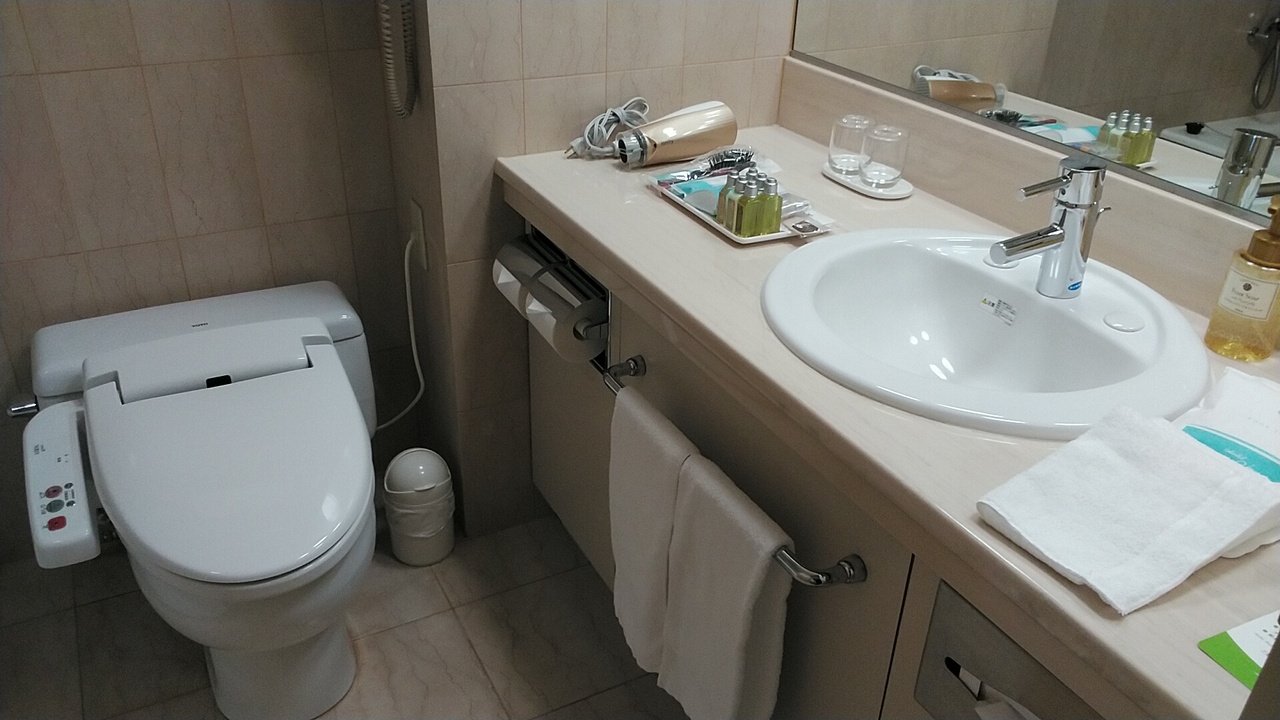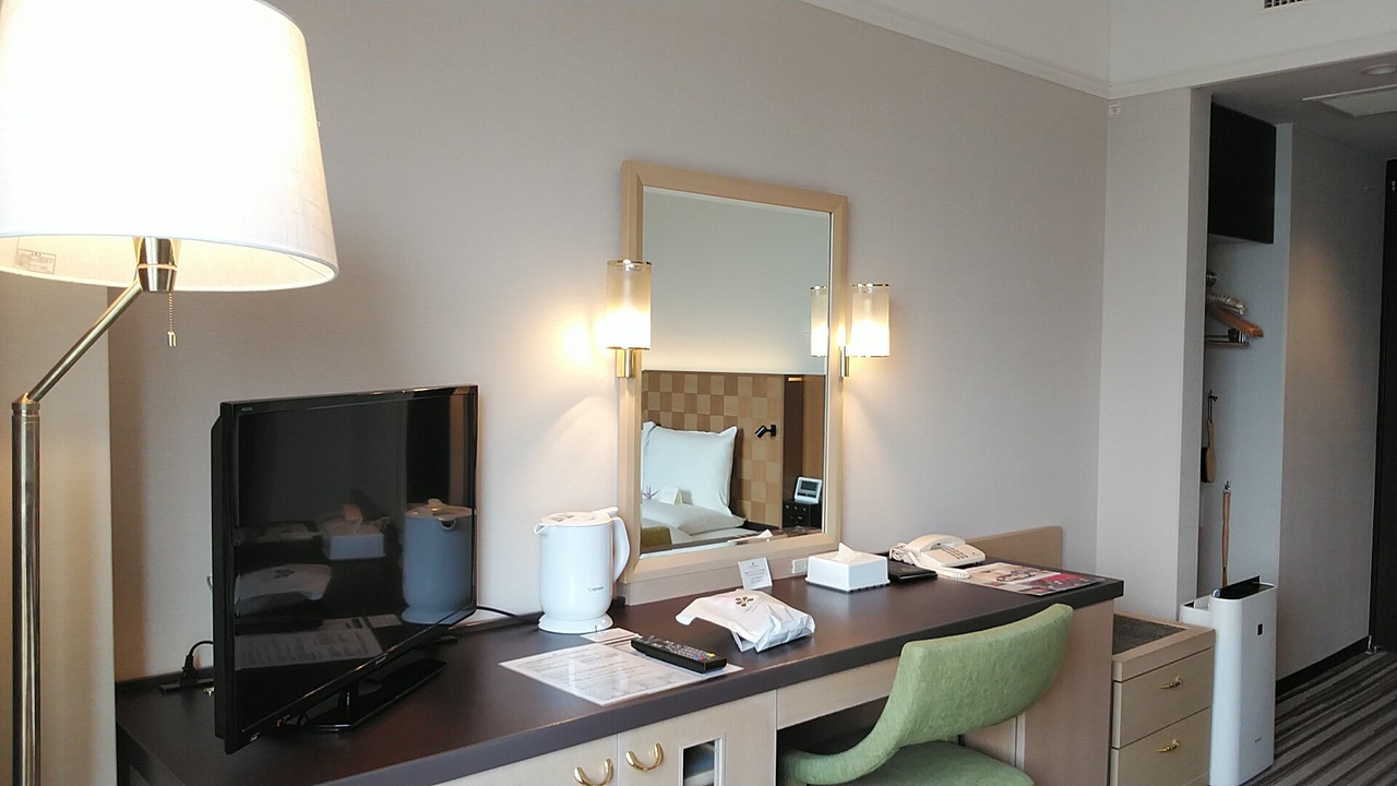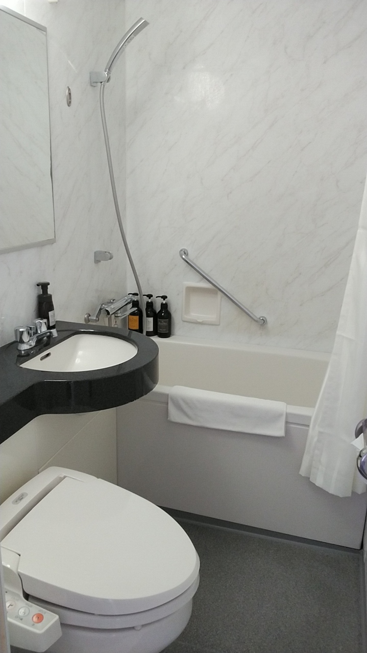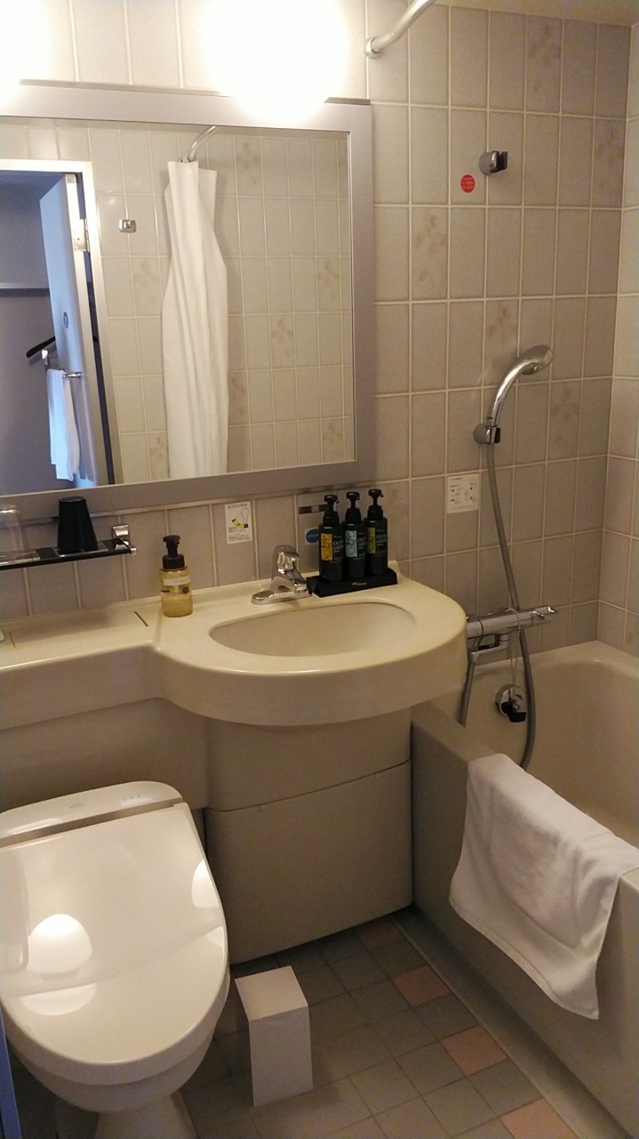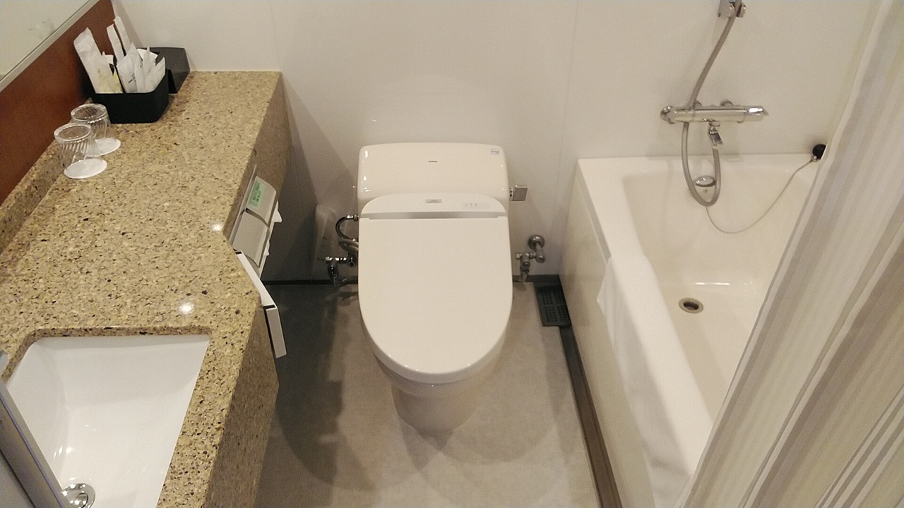 唯一のお風呂とトイレが同室タイプの部屋を予約しました。部屋はデュベスタイルのベッドメイキングに加湿空気清浄機で快適でした。部屋は大通りと逆で静かでよかったです。高層階からは松山城が見えました。大街道は松山では中心部で飲食に観光も便利です。