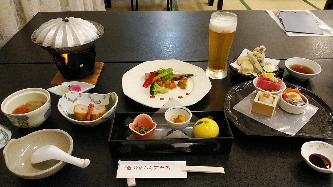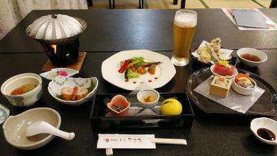 当日予約で2食付きで新館和室で1万円程度でお得でした。部屋は和室で眺望は普通で浴室はなかったですが岩風呂の温泉も近く良かったです。温泉はアルカリの優しい泉質で良いですね。夕食も料、味もちょうど良く満足です。時間が決められてる食事は時間を固定することでコストを抑えてる気がします。駅も徒歩圏内でコンビニも2分くらいにあります。
