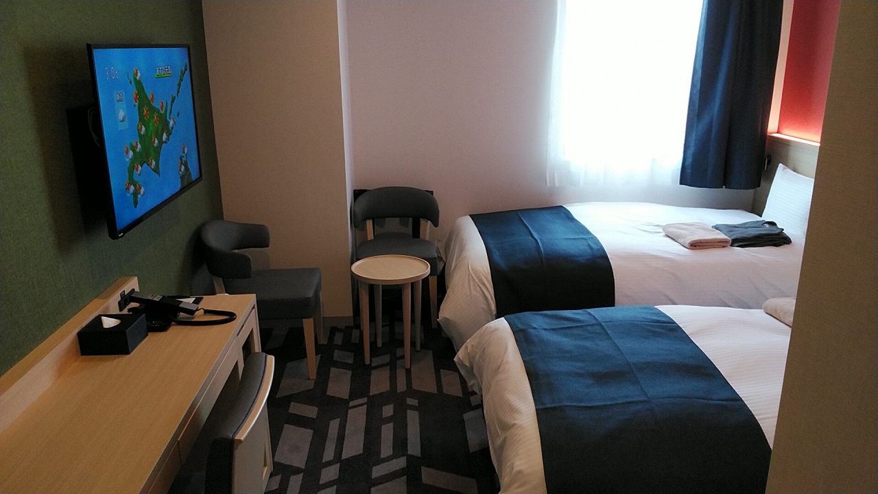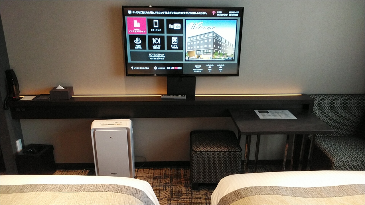 おまかせプランで予約して一番スタンダードなツインにアサインされました。部屋のベッドはシモンズのデュベスタイルに加湿空気清浄機で快適でした。内装も京都らしさもあり落ち着くホテルでした。大浴場もあるので部屋のお風呂は使いませんでした。京都観光に地下鉄を使っていたので九条駅が近くて便利でした。