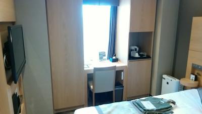 八条口がきれいになって駅からの道もきれいになってよかったです。ホテルは大浴場でゆっくりできて、部屋はデュベスタイルのベッドメイキングに加湿空気清浄機と快適でした。部屋に収納も充実してるので連泊の時はスッキリ滞在できて良いですね。部屋は南向きで伏見城が小さく見えました。