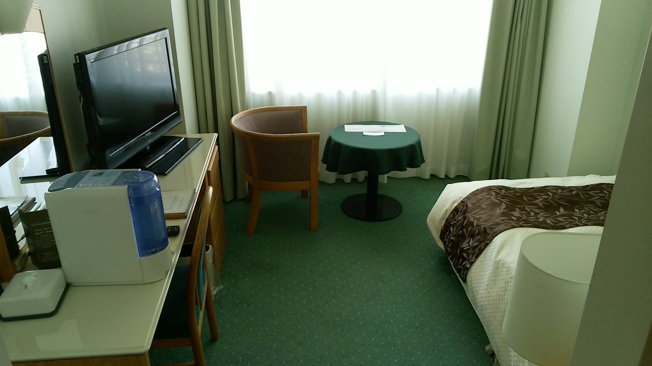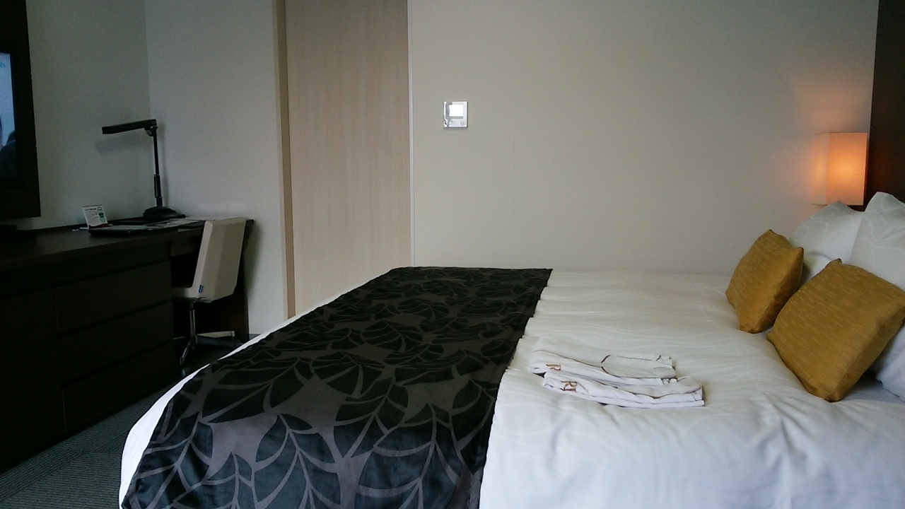 今回は上層階の北向きの部屋でした。客室はシモンズのベッドにデュベスタイルのベッドメイキングと快適でした。加湿空気清浄機、部屋のレイアウトも良かったです。部屋からは伊丹空港に降下する飛行機もみられて良かったです。