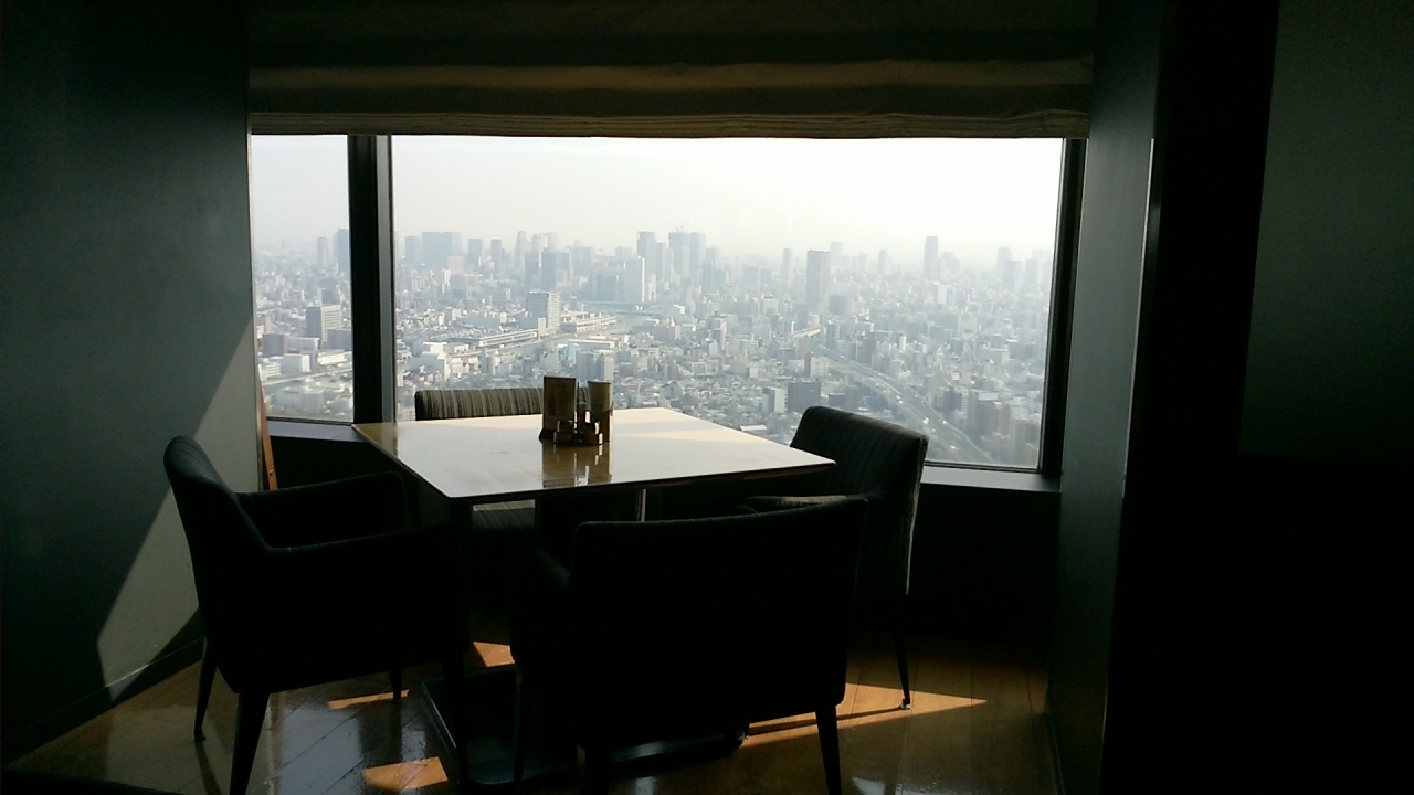 街側の眺望は梅田グランフロントから、あべのハルカスまで望めました。