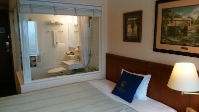 京都滋賀の花見用にシースルーバスの部屋に2泊しました。最上階で部屋からは旧草津川の堤防の桜も見えて良かったです。部屋はシモンズのベッドと熟睡できました。いいのはお茶、御菓子、水、入浴剤2種類が部屋にありお得ですね。