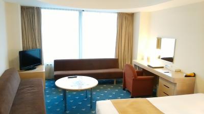 18階以上の客室は眺望もよく、ホテル内で飲食も楽しめるホテル。