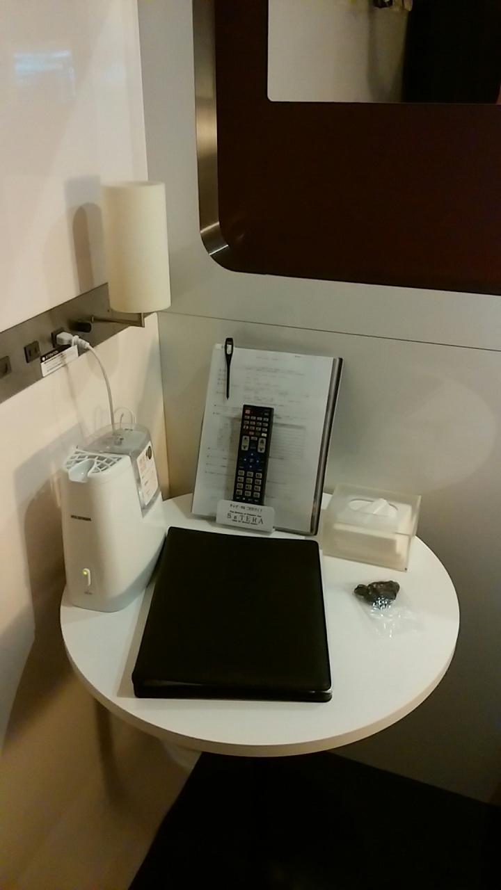前回と同じ面積の部屋ですが浴槽分広くて使いやすかったです。大浴場があるので部屋でシャワーは使わないので今回の部屋がいいですね。加湿器はEVホールにおいてあります。満足ですが他のドーミーインより少し狭いしチェックアウトが10時です。