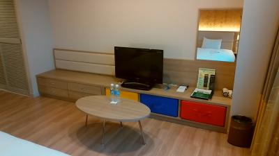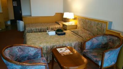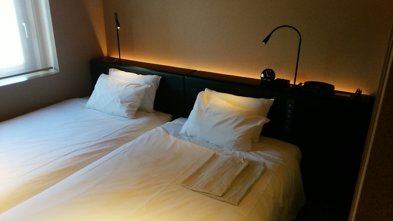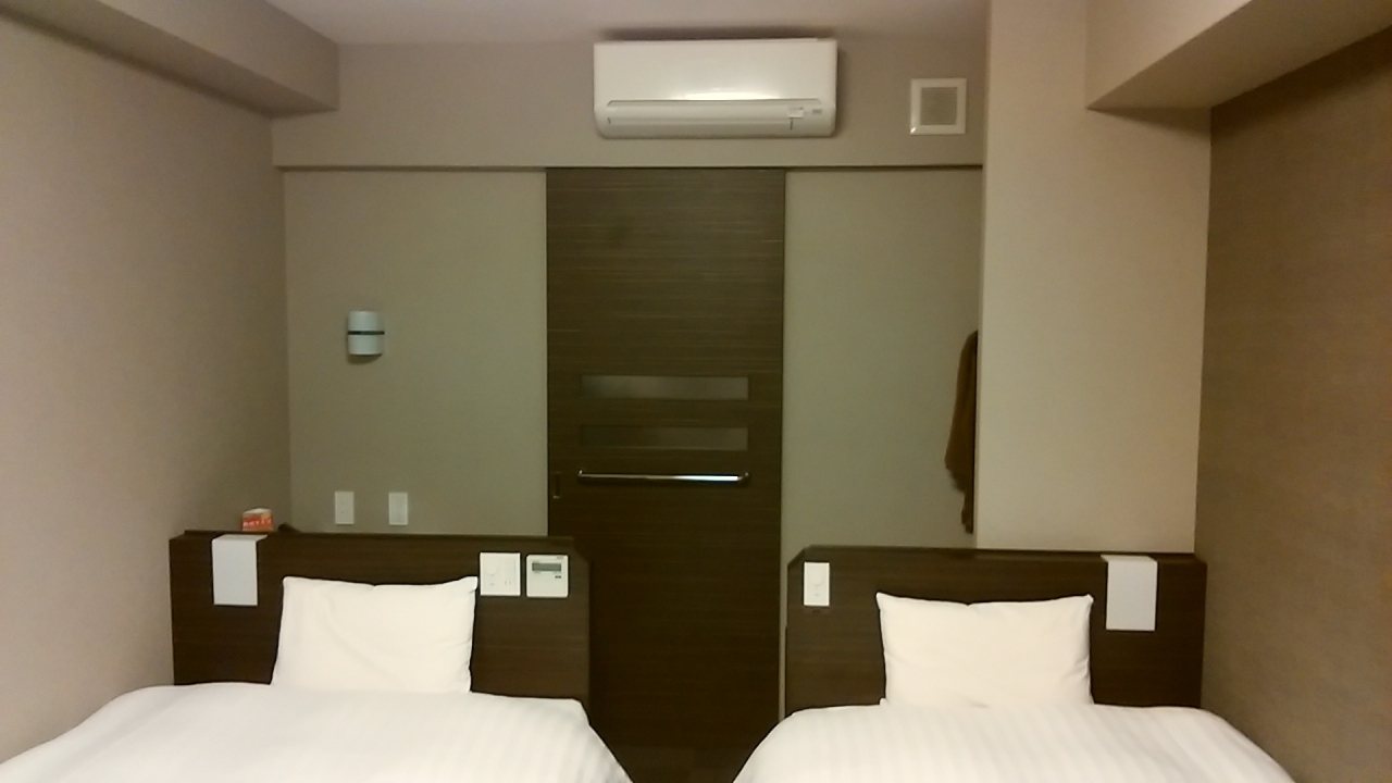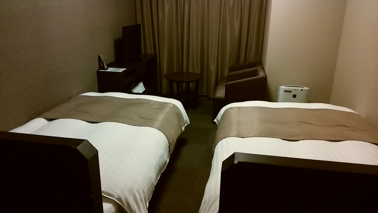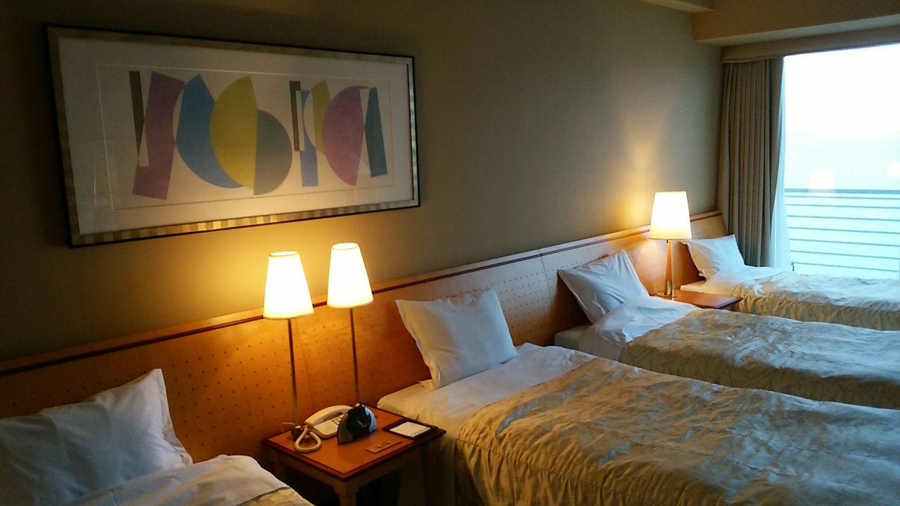 ツインで面白い間取りでした。ナイトテーブルがないので少し不便です。部屋のスペースはあるのでソファに座ってテレビが見れました。部屋に扉があるので落ち着いて過ごせましたが眺望はありません。温泉は良かったです。