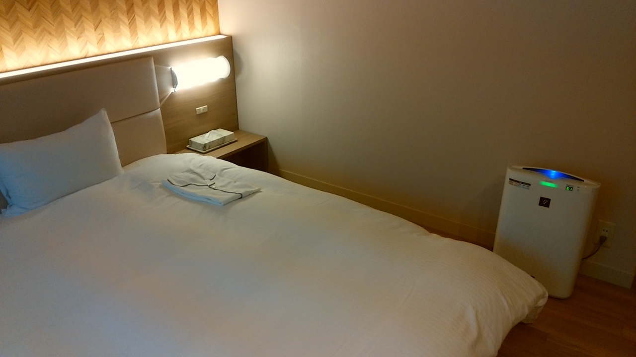 部屋は少し広めのクィーンを予約し快適に過ごせました。ベッド、加湿器付空気清浄機はいいですね。一番の目的は最上階の温泉で今回もゆっくりできました。- 旅行時期