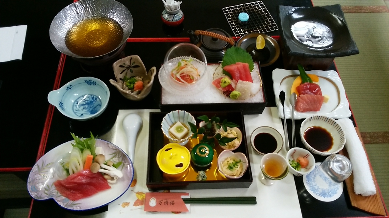 勝浦の新鮮なマグロが美味しかったです。源泉かけ流しの温泉も○