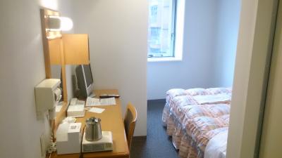 駅は堺筋本町と北浜利用しました。地下から出るので出口を間違えなければ程よい距離です。現在は道路から見て右が駐車場,左となりはビルが隣接してます。客室がビル側の時は採光は取れない客室で今回はそうでした。やはり窓の外は景色がほしいですね。客室は寝やすいベッドに加湿空気清浄機があって良いですね。ビジネスには良いと思います。