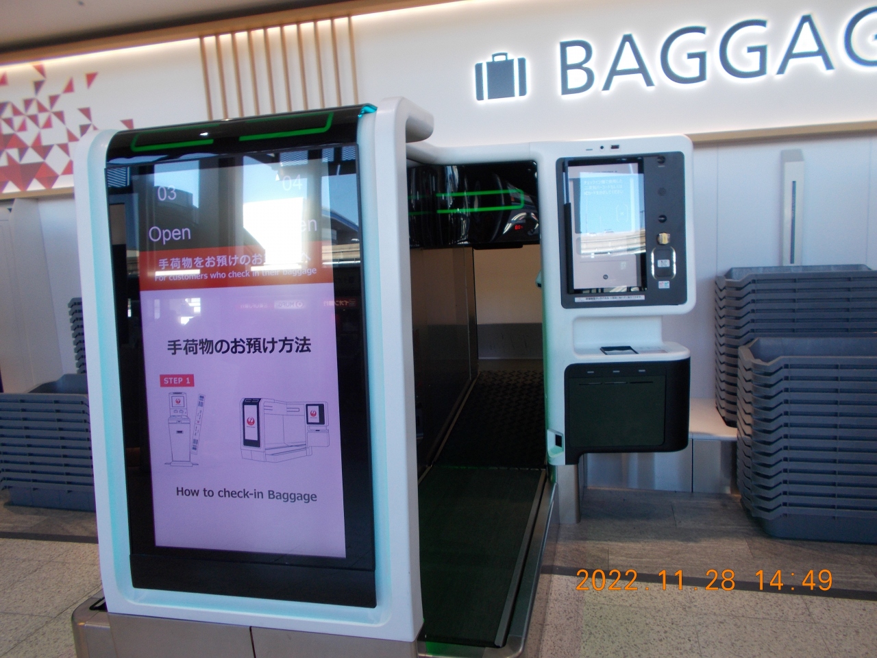 大阪国際空港 JALの自動チェックイン機とSelf Baggage Drop(自動手荷物預け機)初めて利用しました。