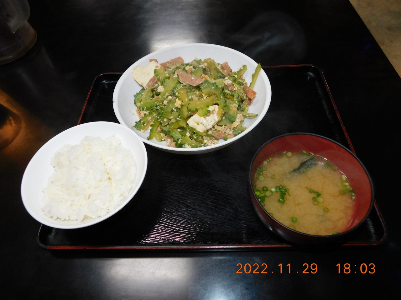 夕食はハイウエイ食堂でゴーヤチャンプルーです。