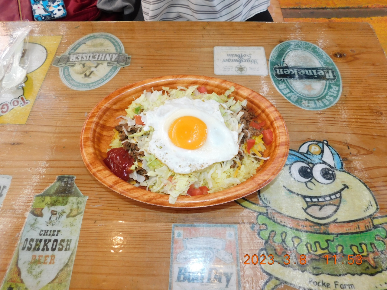私はタコライスにロコモコ調の目玉焼きが乗っかった