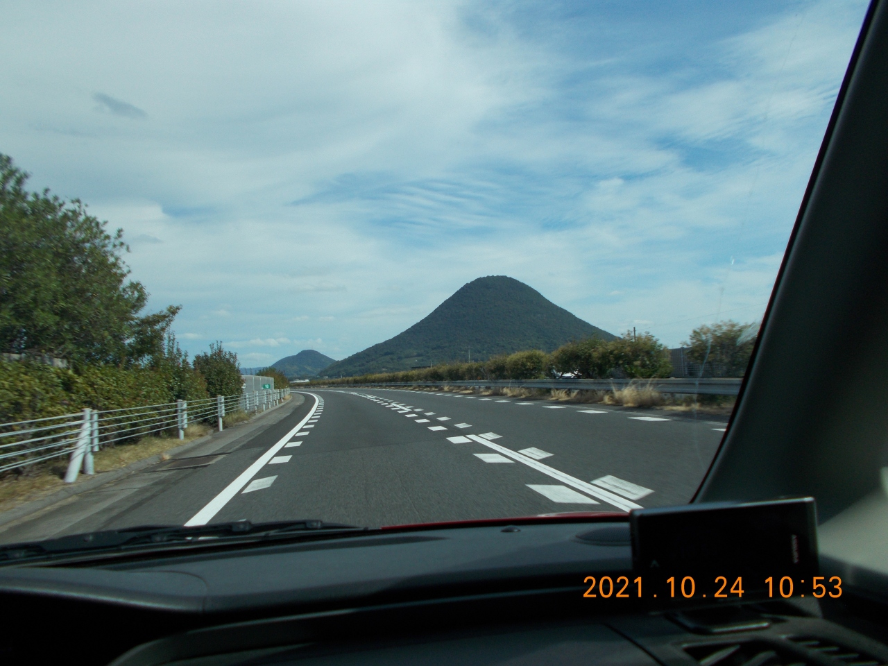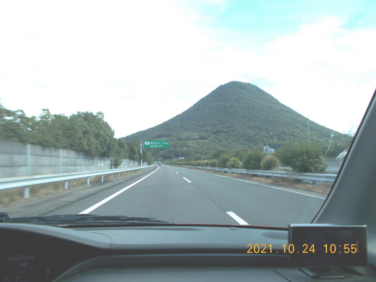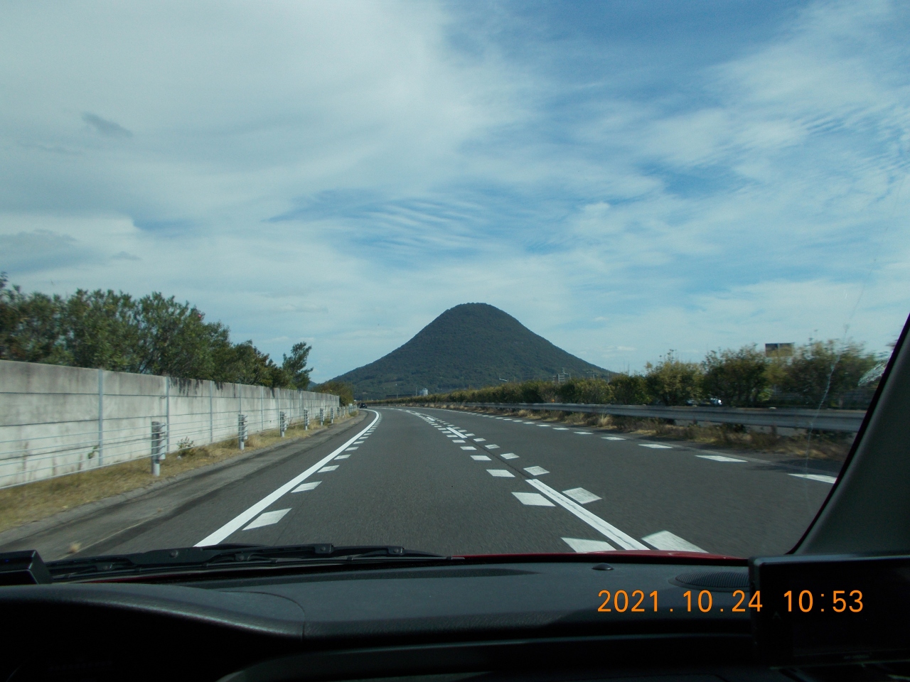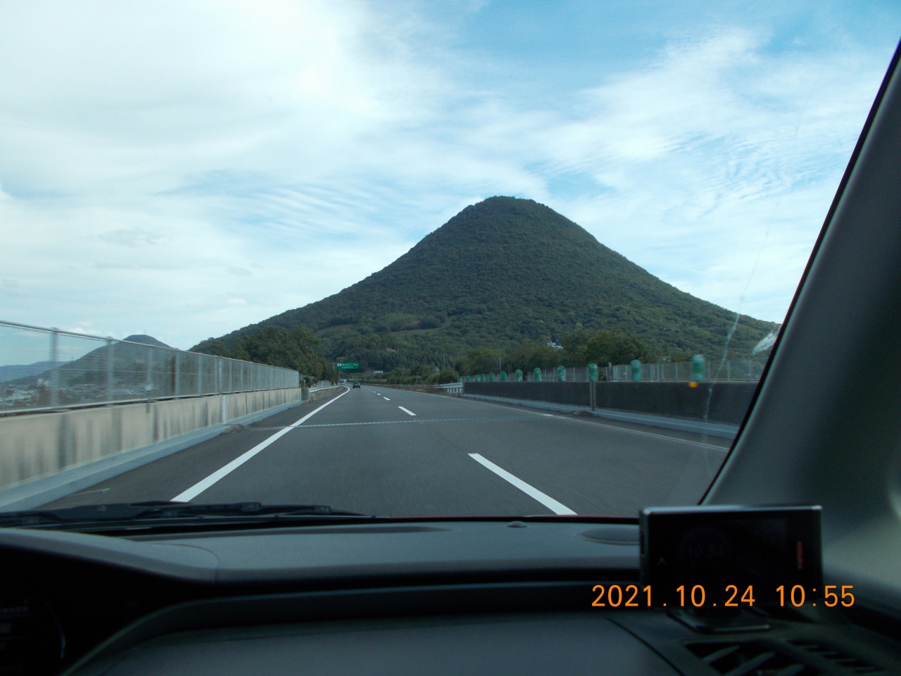飯野山(讃岐富士) 高速道路で、段々近くなると鮮やかな緑の讃岐富士が!