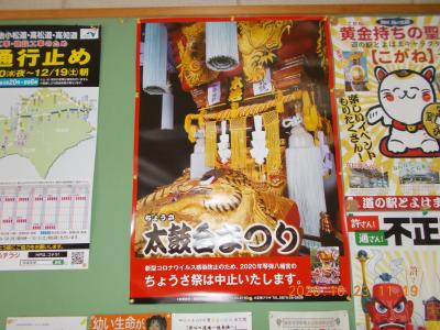 観音寺(かんおんじ)の秋祭りの中止のポスターがありました。