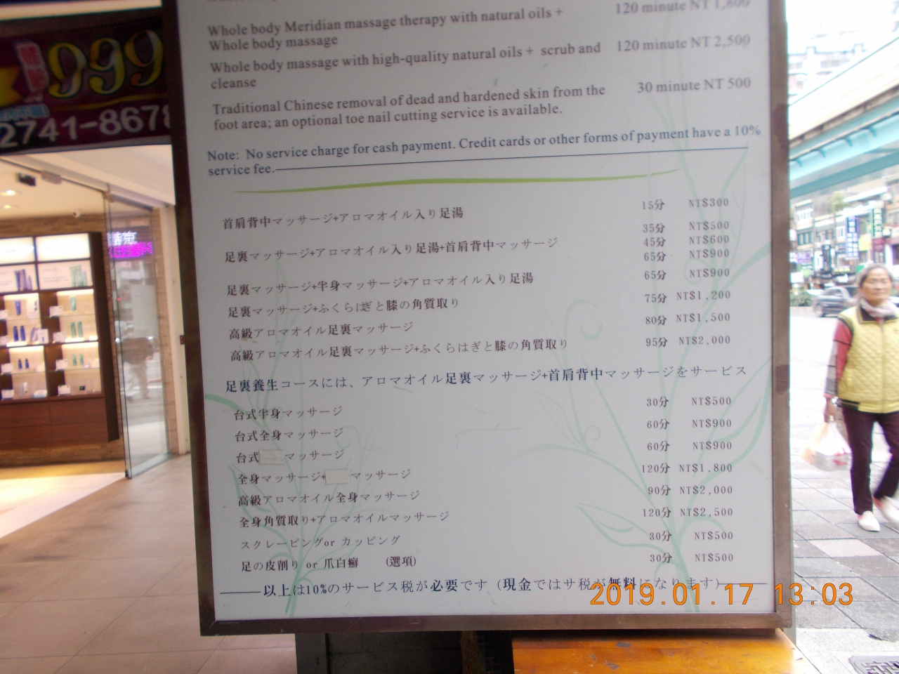 妻は足裏マッサージ首肩背中マッサージ60分900元。