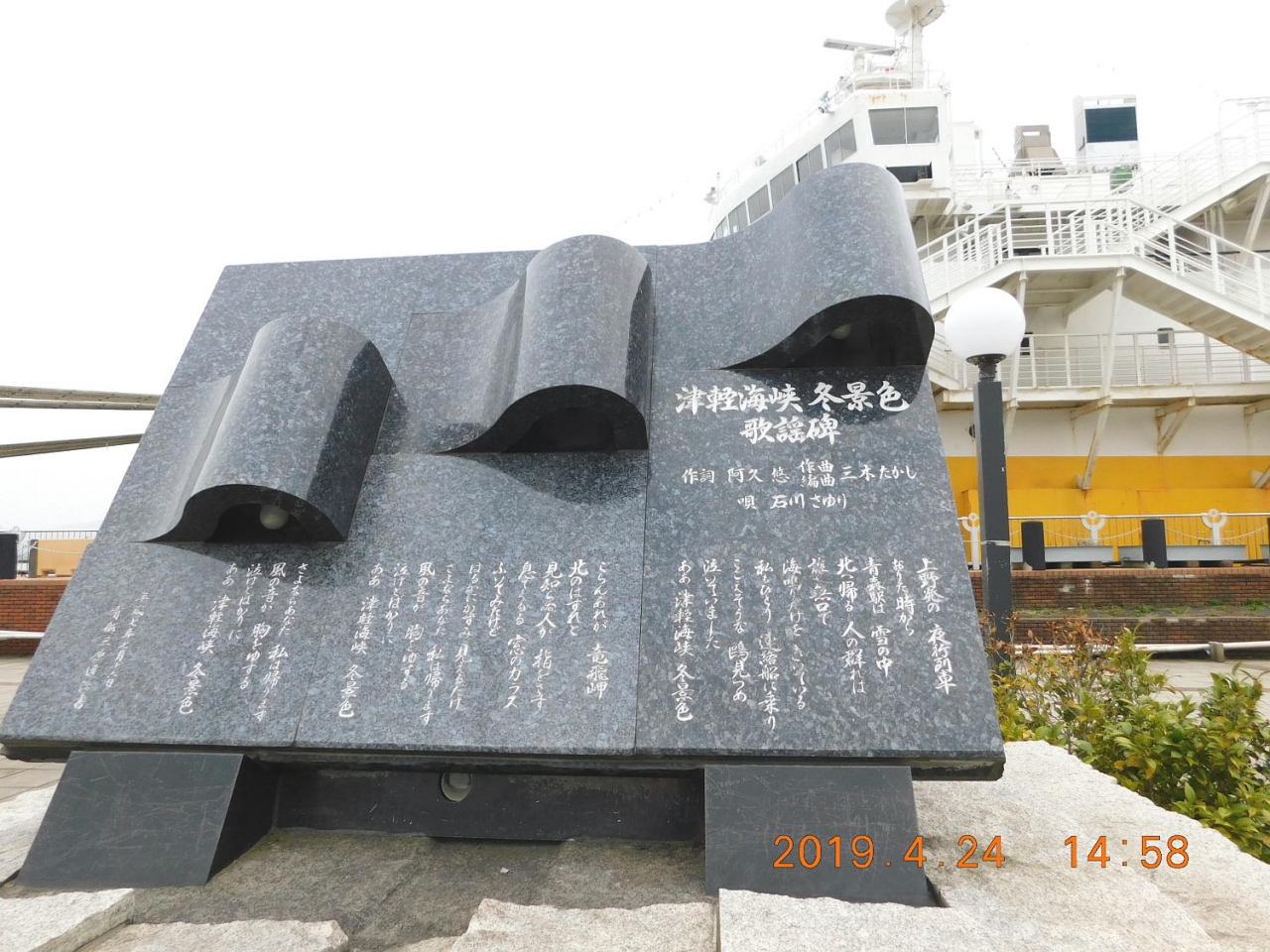 津軽海峡冬景色歌謡碑 青函連絡船メモリアルシップ八甲田丸前 石川さゆりさんの歌に感激