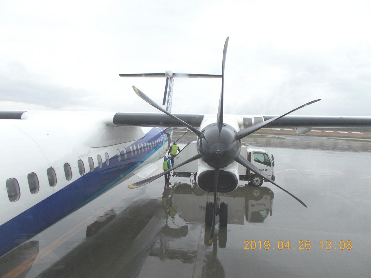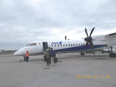 ANA1853便、11時55分発はなんとプロペラ機です。