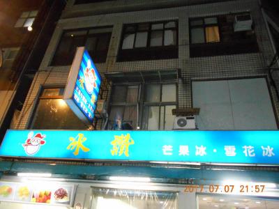 饒河街夜市の門をくぐり、すぐ左に彩虹猫冰屋があります。