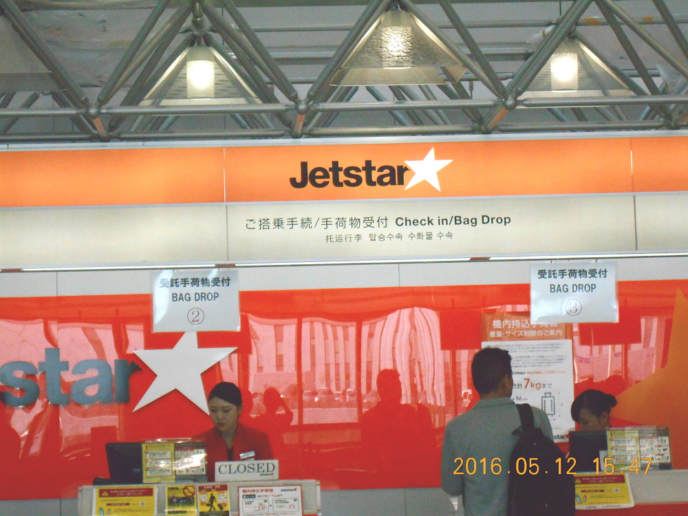 ジェットスターのチェックインカウンターに行き荷物を預けます。