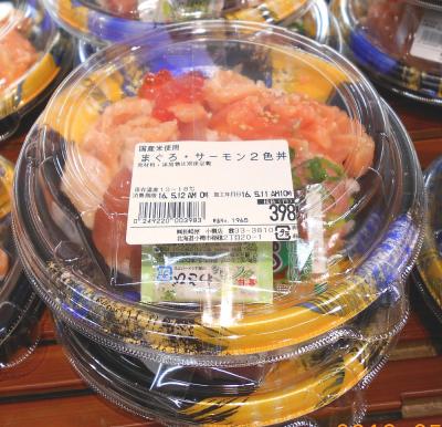 妻はまぐろ・サーモン2色丼・・・なんと398円