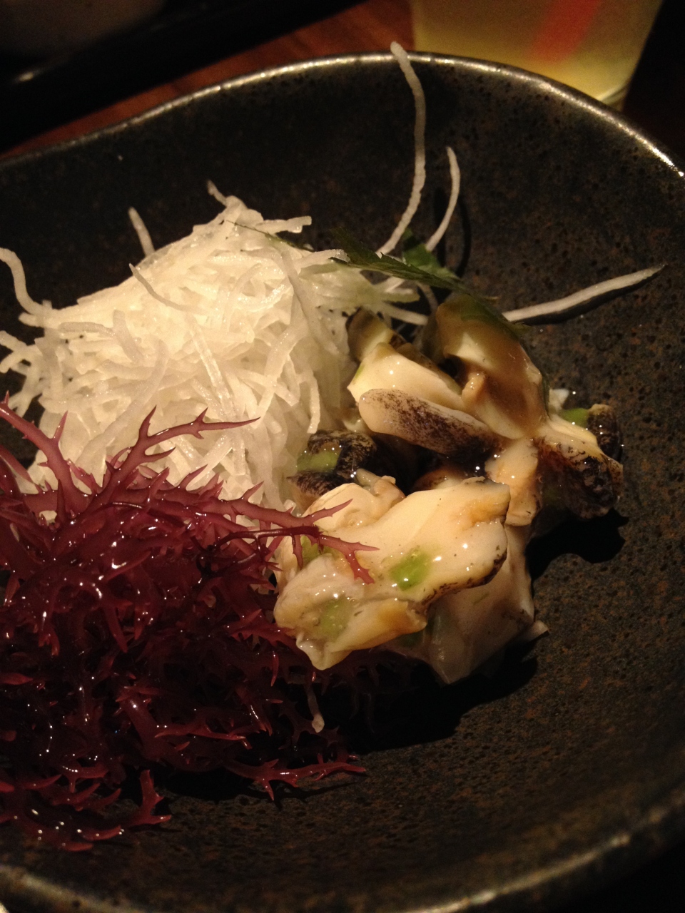 画像はつき出しの小さながんもどきと、つぶ貝のわさび漬けという地味なものなのですが、いただいた釜飯がとても良かったです!
