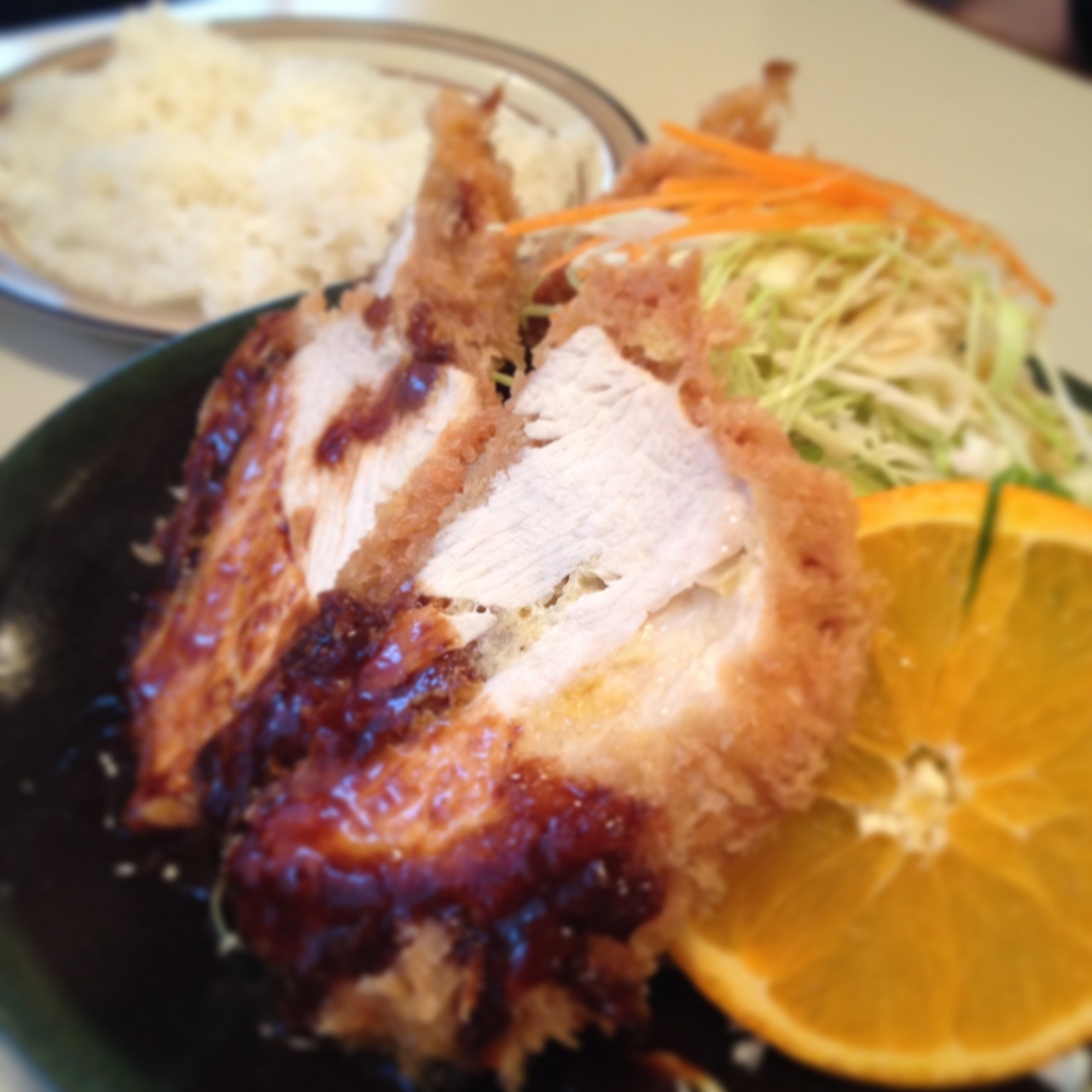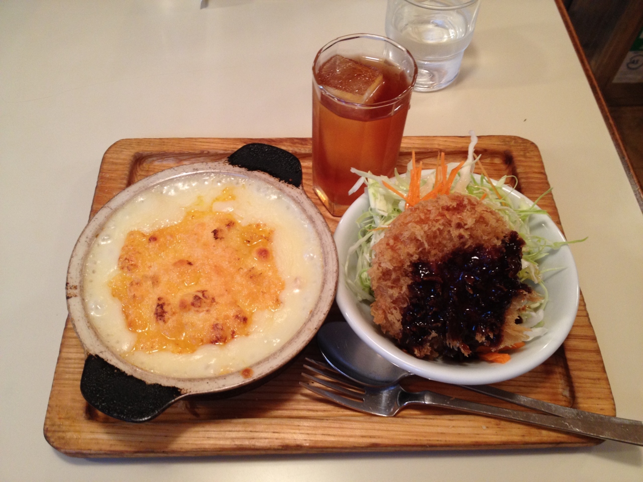 チキンカツの定食と、私はグラタンの定食をいただきました。