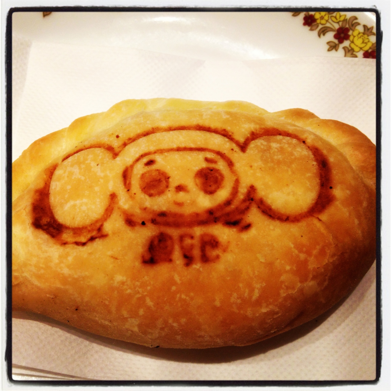 ランチセットをいただきましたが、ピロシキに可愛いチェブラーシカの焼印!