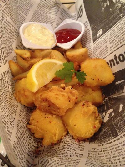 いつでも美味しいフィッシュ&チップス。ビネーガーをタップリふりかけて熱々をいただきます。季節のメニューだと思いますが、アスパラと桜海老の春巻き、美味しかったので次にまたあればいただきたいです!
