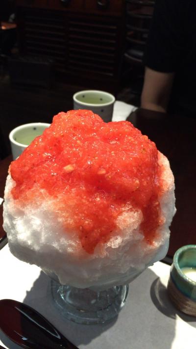 きな粉や黒蜜のかかったものもとても良いのですが、イチゴのゆるーいジャムのようなものがかかっているいちごが一番のこのみです。