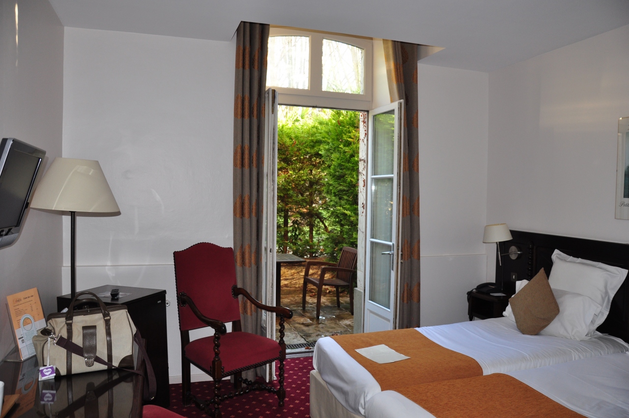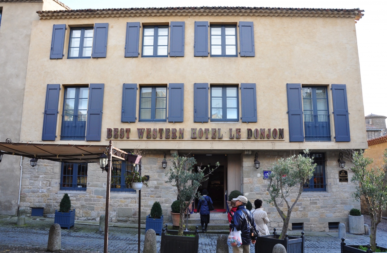 城壁に守られたアヴィニヨンのレビュブリック門から200mほど入った左側にあります。ホテルの入り口は幅が狭いうえに段差があり、キャリーバッグを転がしてのチェックインは大変でした。