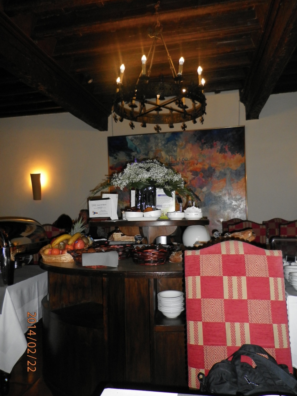 朝食会場は太い梁がむき出しで、絵画などのインテリアを含めて如何にも古いお屋敷を大事に使用している感じがしました。- 旅行時期