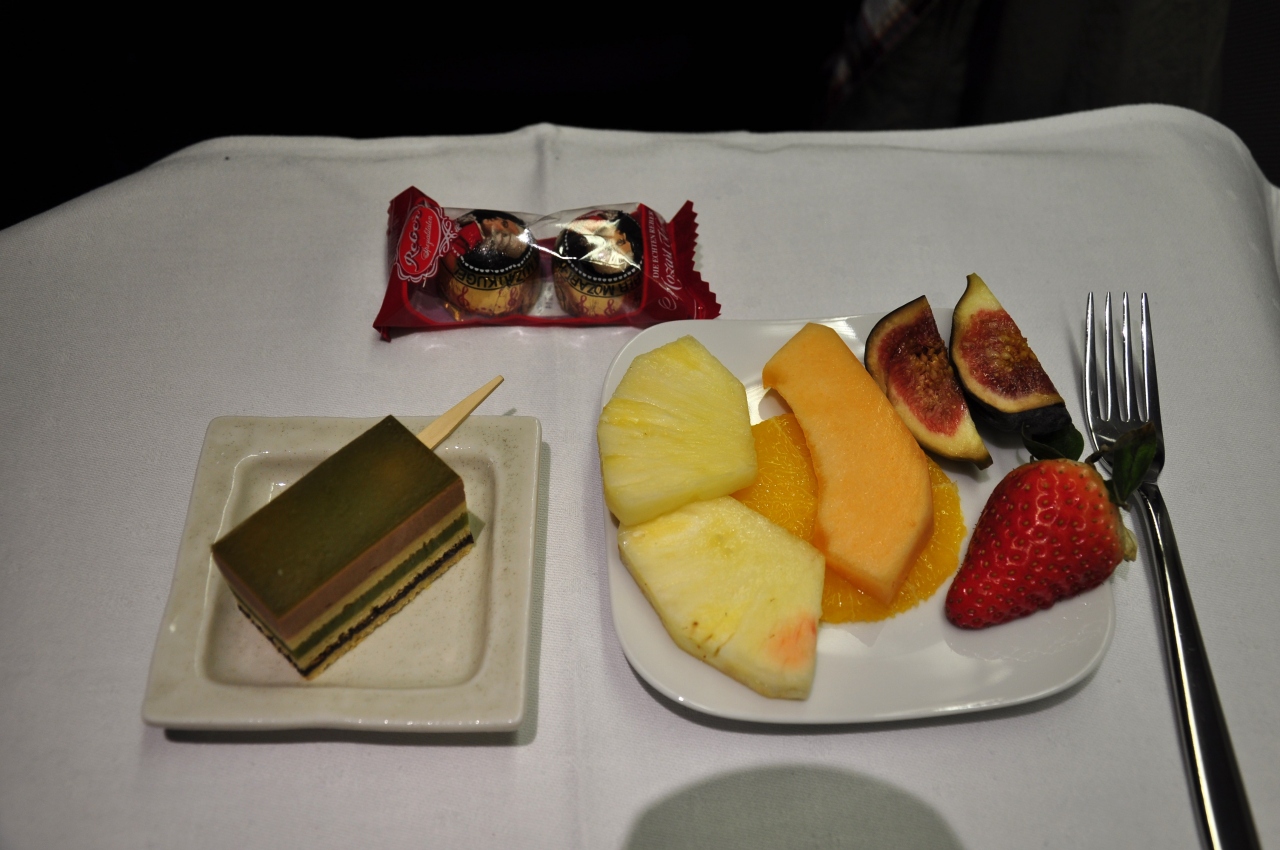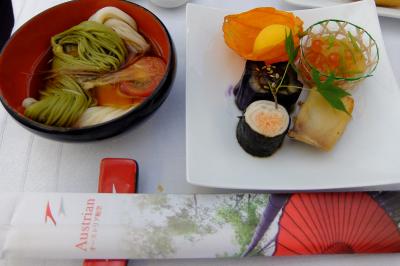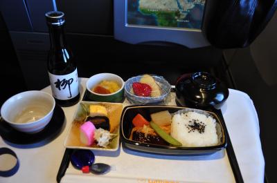(日本酒が美味しいとCAさんに言うと、1本お持ちくださいと差し出されましたが、乗り継ぎがあるので辞退しました。)